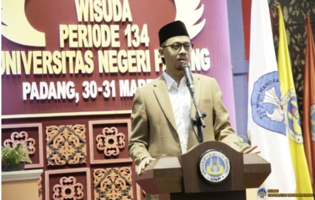 “Sebagai pimpinan dan atas nama seluruh warga Universitas Negeri Padang  rasa bahagia dan apresiasi tinggi kelulusan wisudawan/ wisudawati,” papar Prof. Ganefri, Sabtu (30/3/2024) di Auditorium UNP.
