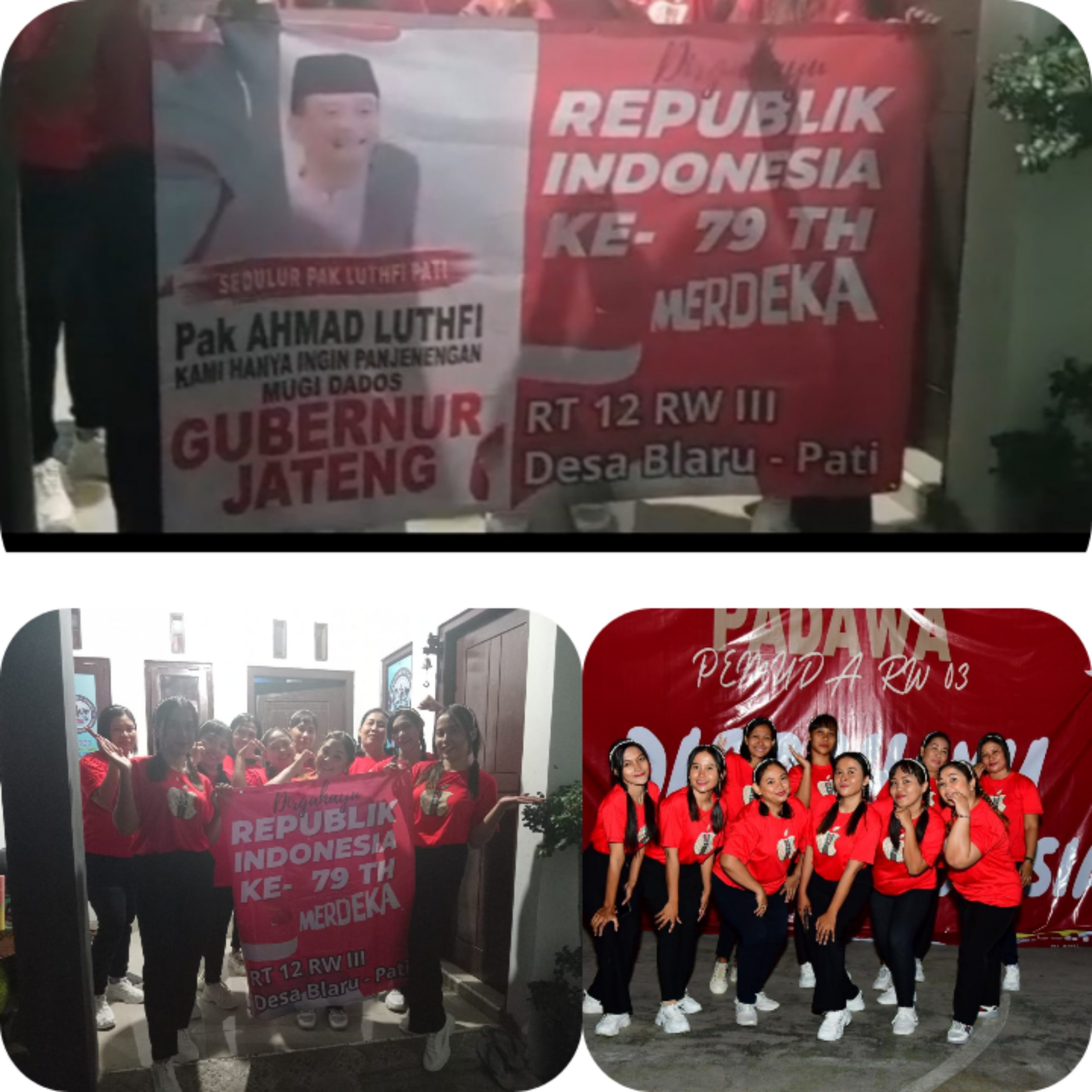 Kado dari warga Blaru Pati dalam momen HUT RI Ke-79 selain semarakkan HUT RI, warga Blaru Pati bersemangat serta berantusias suarakan dukungannya kepada Jenderal Ahmad Lutfi sebagai Calon Gubernur Jawa Tengah dan Sudewo sebagai Calon Bupati Pati di periode 2024-2029. Sabtu 17 Agustus 2024