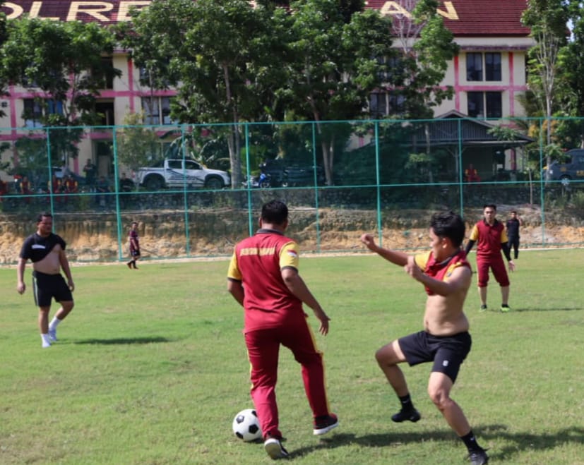Kepri – Kompas86.com__, ( 27.04.2024 ) Polres Bintan melaksanakan pertandingan Sepak Bola antara personel Polres Bintan salah satu cara untuk mendukung TimNas U23 pada ajang AFC di Qatar, permainan Sepak Bola tersebut dilaksanakan di lapangan Sepak Bola Polres Bintan yaitu di lapangan Mini Soccer Polres Bintan, Kapolres Bintan juga ikut langsung bermain Sepak Bola, Sabtu (27/4/2024).