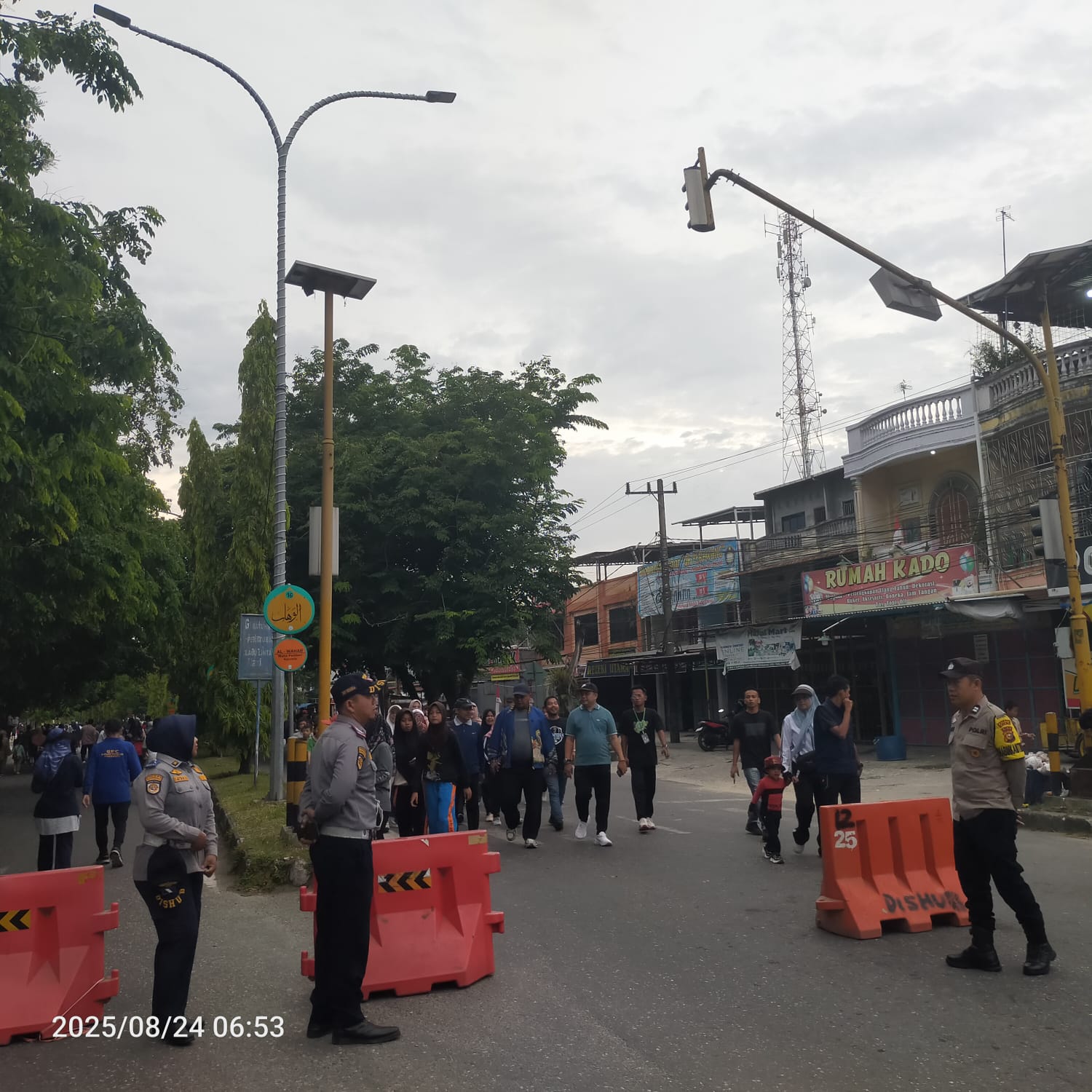 Minggu,24 Agustus 2025 Polsek Tualang Polres Siak melaksanakan pengamanan kegiatan Car Free Day (CFD) di wilayah Kecamatan Tualang, Minggu (24/8/2025) pagi. Kegiatan berlangsung mulai pukul 06.00 WIB hingga 09.00 WIB di sepanjang Jalan Raya Perawang, mulai dari simpang Jalan Jamsostek (Bank Panin) hingga simpang Jalan Raya Km 5 (Roti Ayah).
