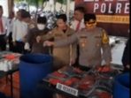 1300 Liter Miras Oplosan Serta Lebih Dari 35 Gram Sabu di Musnahkan Polres Trenggalek Hasil Operasi Pekat Semeru 2024.