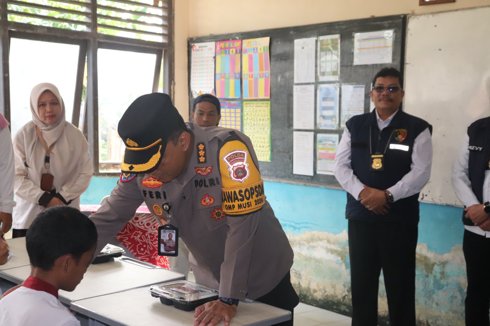 Polda Sumsel Kombes Pol Feri Handoko Soenarso,SIK, SH menunjukkan kepeduliannya terhadap generasi muda dengan turun langsung membagikan makan siang bergizi kepada ratusan siswa Siswi SDN 172 Bukit sangkal kecamatan Kalidoni Palembang , Kamis (07/11/2024). siang