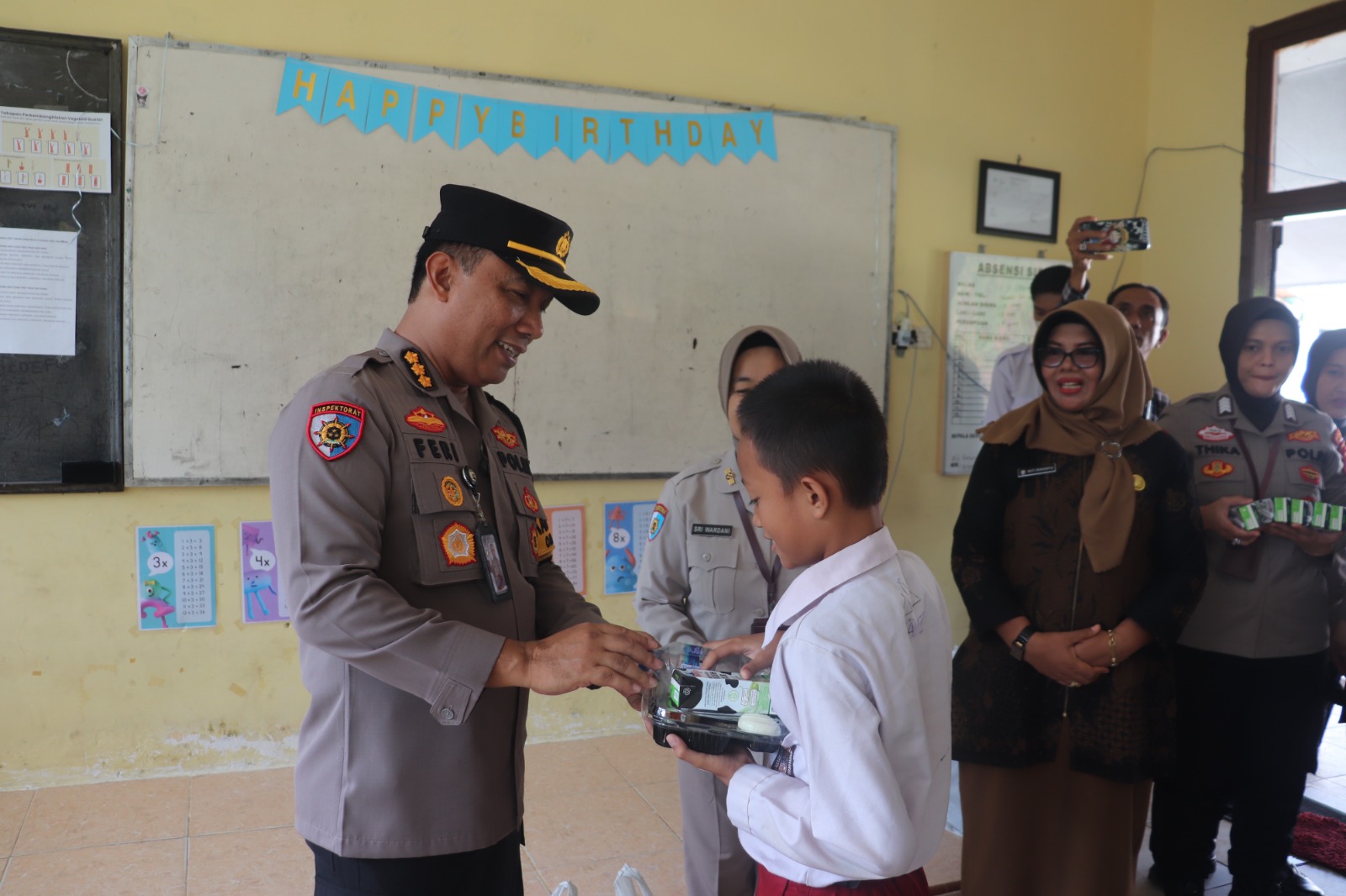“Ini bukan sekadar pembagian makanan, tetapi bentuk nyata kepedulian kami terhadap masa depan anak-anak bangsa,” ujar Kombes Pol Feri Handoko Soenarso
