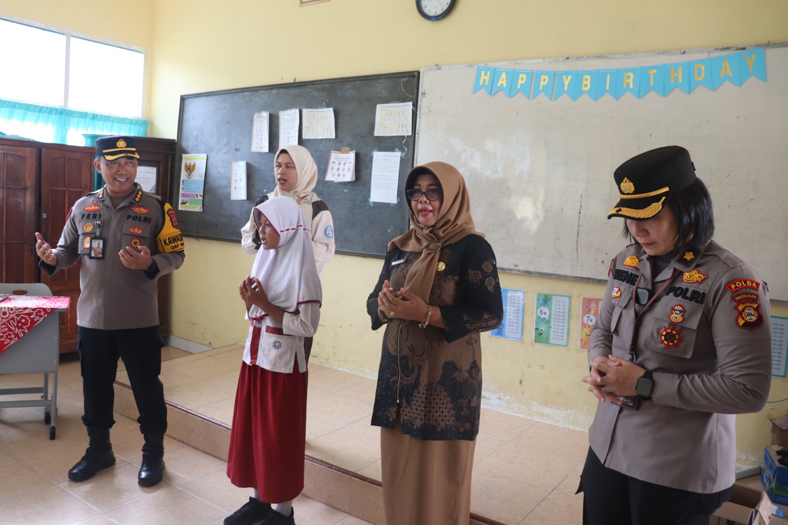 Didampingi Kasubbag renmin satker Itwasda Kompol Irene,SIk , beserta staff ,Personel Reskrimum Polda Sumsel dan Babinkamtibmas membagikan ratusan paket makanan bergizi kepada para pelajar di sekolah tersebut.