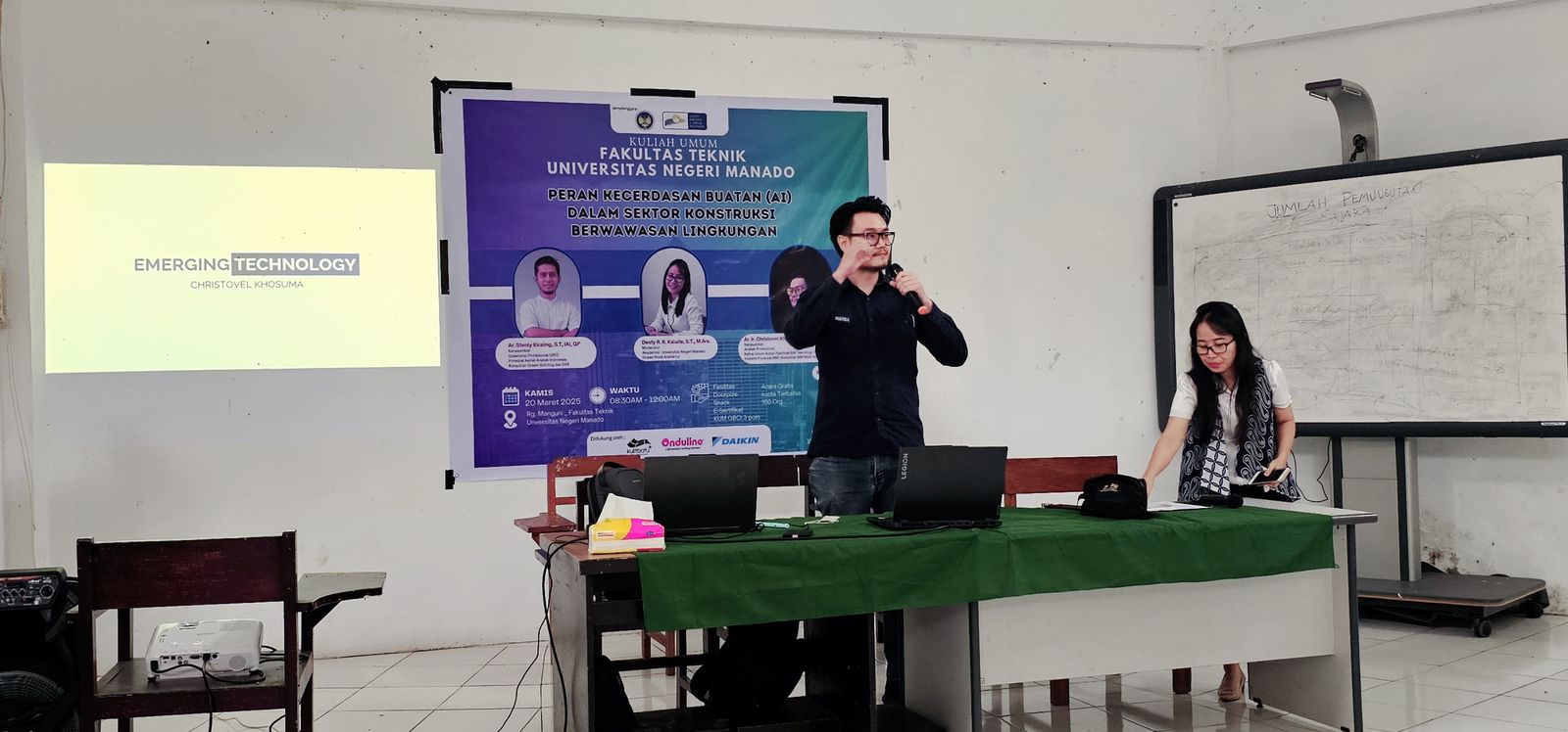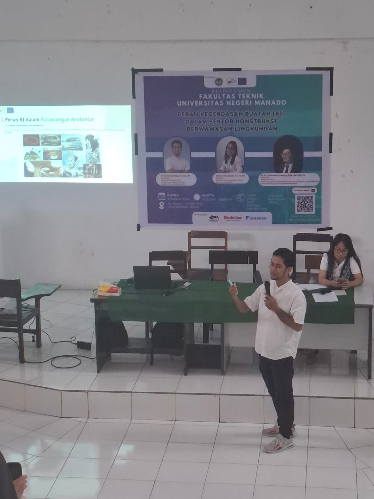 Sebagai upaya memperluas wawasan sivitas akademika terhadap topik ini, Program Studi Arsitektur Fakultas Teknik Universitas Negeri Manado (UNIMA) menyelenggarakan kuliah umum bertema “Peran Kecerdasan Buatan (AI) dalam Sektor Konstruksi Berwawasan Lingkungan” pada Kamis, 20 Maret 2025 di Ruang Manguni, FT UNIMA.
