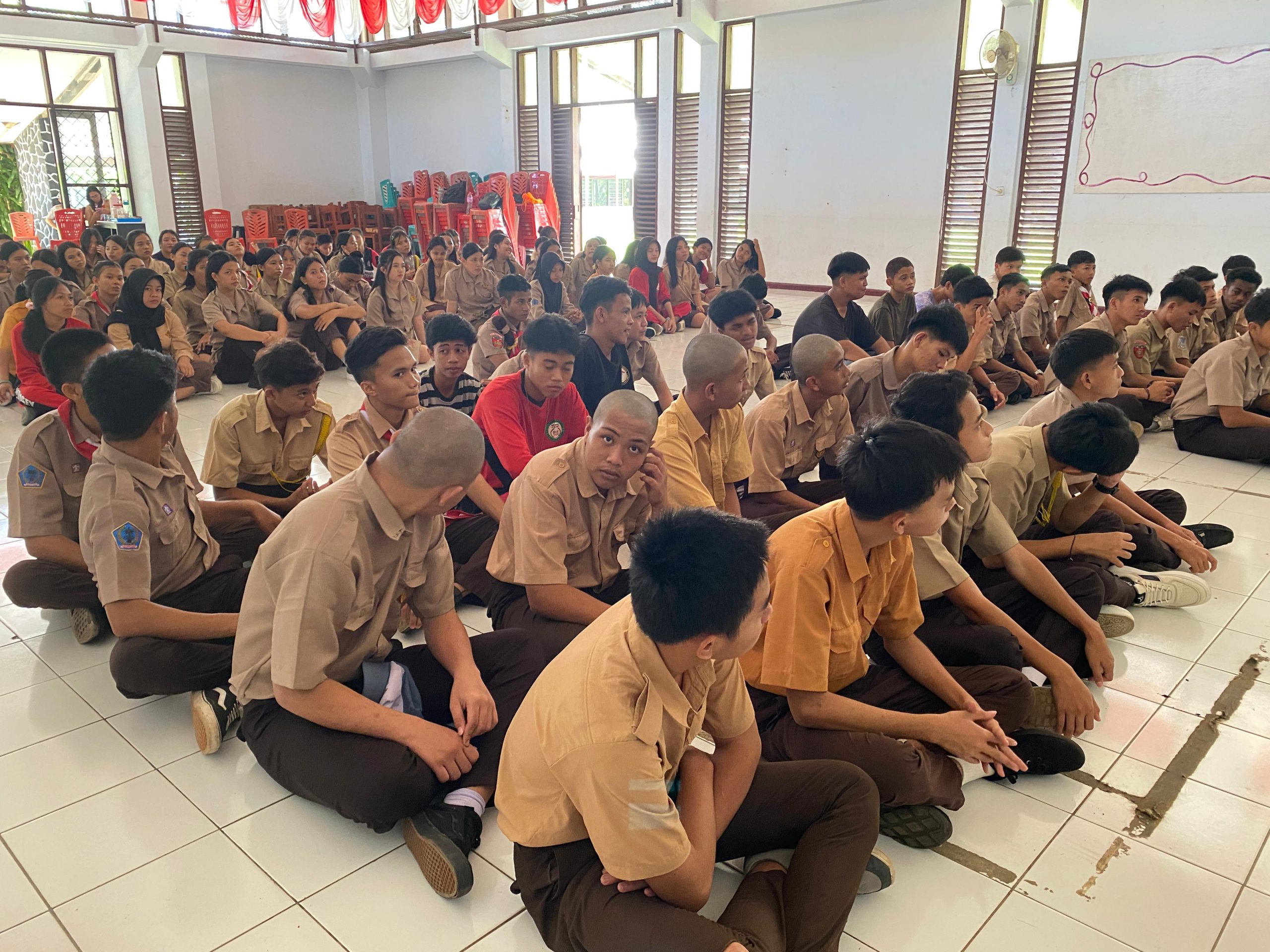 Ditengah keramaian anak anak lainnya yang sedang menikmati liburan Hari Raya Waisak yang jatuh pada hari ini Senin 12 Mei 2025, namun berbeda dengan Siswa SMK N PP Kalasey yang hari ini duduk melantai di ruang Aula, mendengar materi dari kakak Pembina juga bermain dan melakukan atraksi atraksi Kepramukaan.