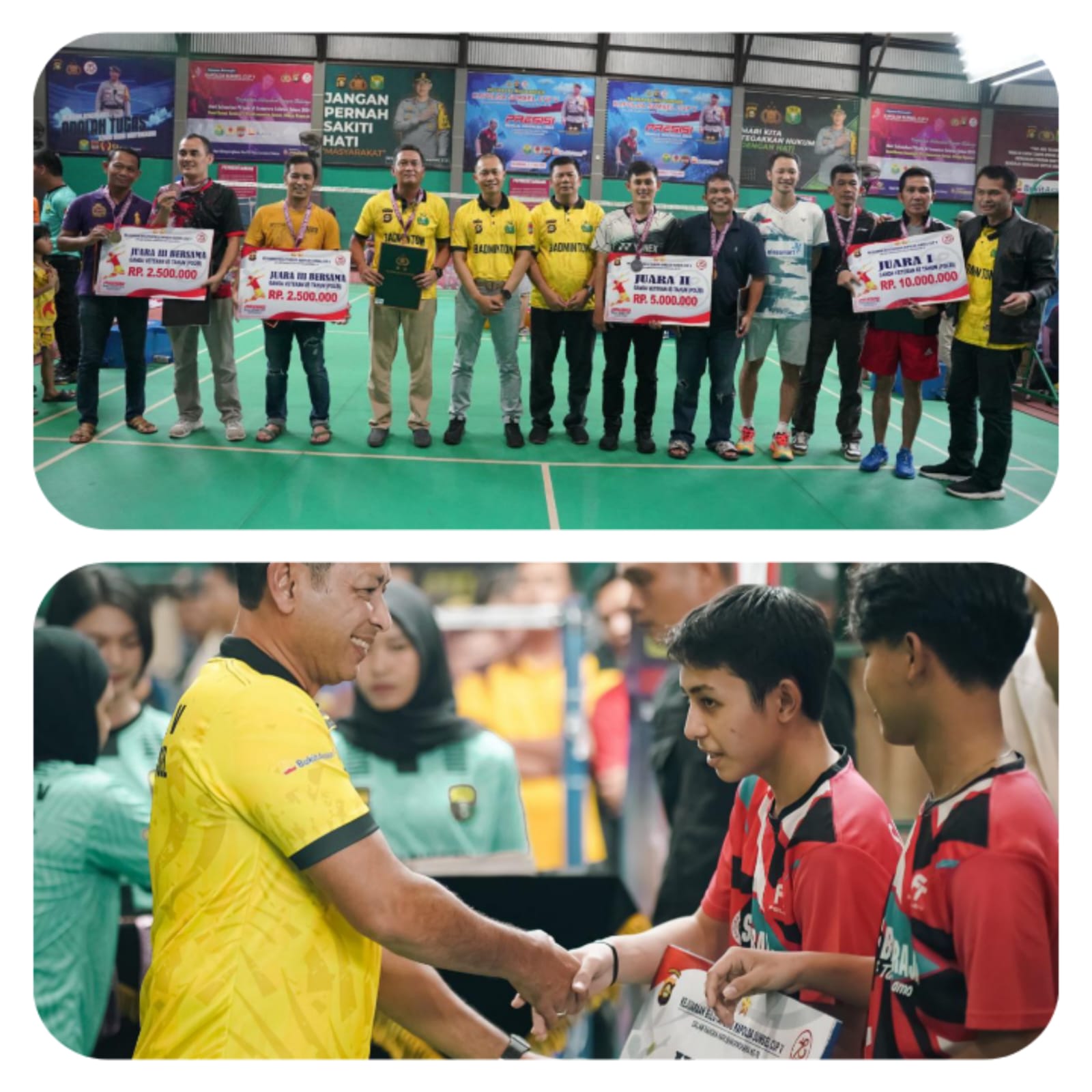 Kapolda Sumsel Irjen Pol A.Rachmad Wibowo, SIk diwakili Karo SDM Polda Sumsel Kombes Pol Sudrajad Hariwibowo, SIK,MSI didampingi Kapolres Musirawas AKBP Andi Supriadi, SH,SIK,MH selaku Koordinator Kejuaraan Badminton dalam