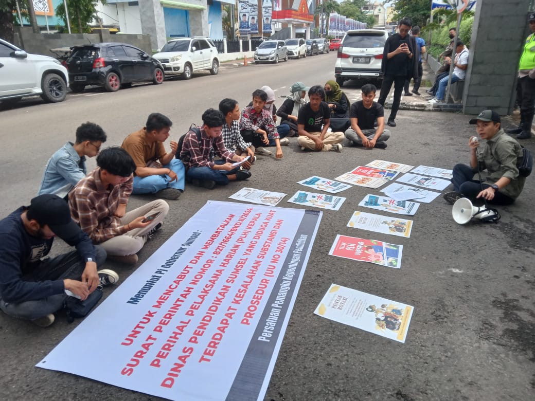 “Ya dalam aksi ini kami menuntut, cabut dan batalkan penunjukan Plh. Kadisdik dan copot Kepala Dinas Pendidikan Provinsi Sumsel yang baru dilantik, karena beliau masih menjabat sebagai Pj. Bupati OKU aktif atau tinggalkan jabatan sebagai Pj. Bupati agar fokus menjadi Kadisdik.