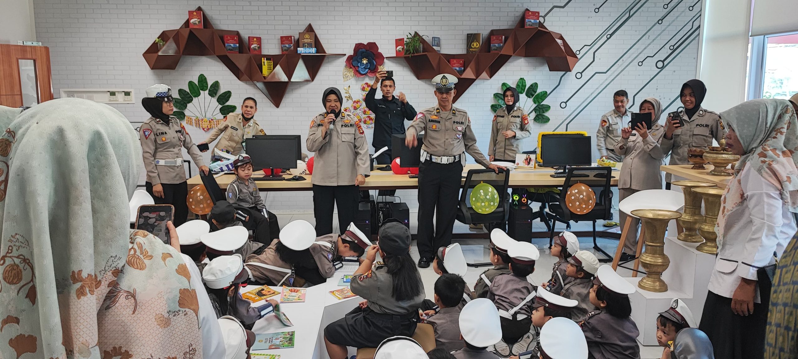 Kegiatan kunjungan ke perpustakaan E,-library Setum Polda Sumsel yang dimotori oleh pihak Sekolah Taman Kanak kanak Matahari Sumsel