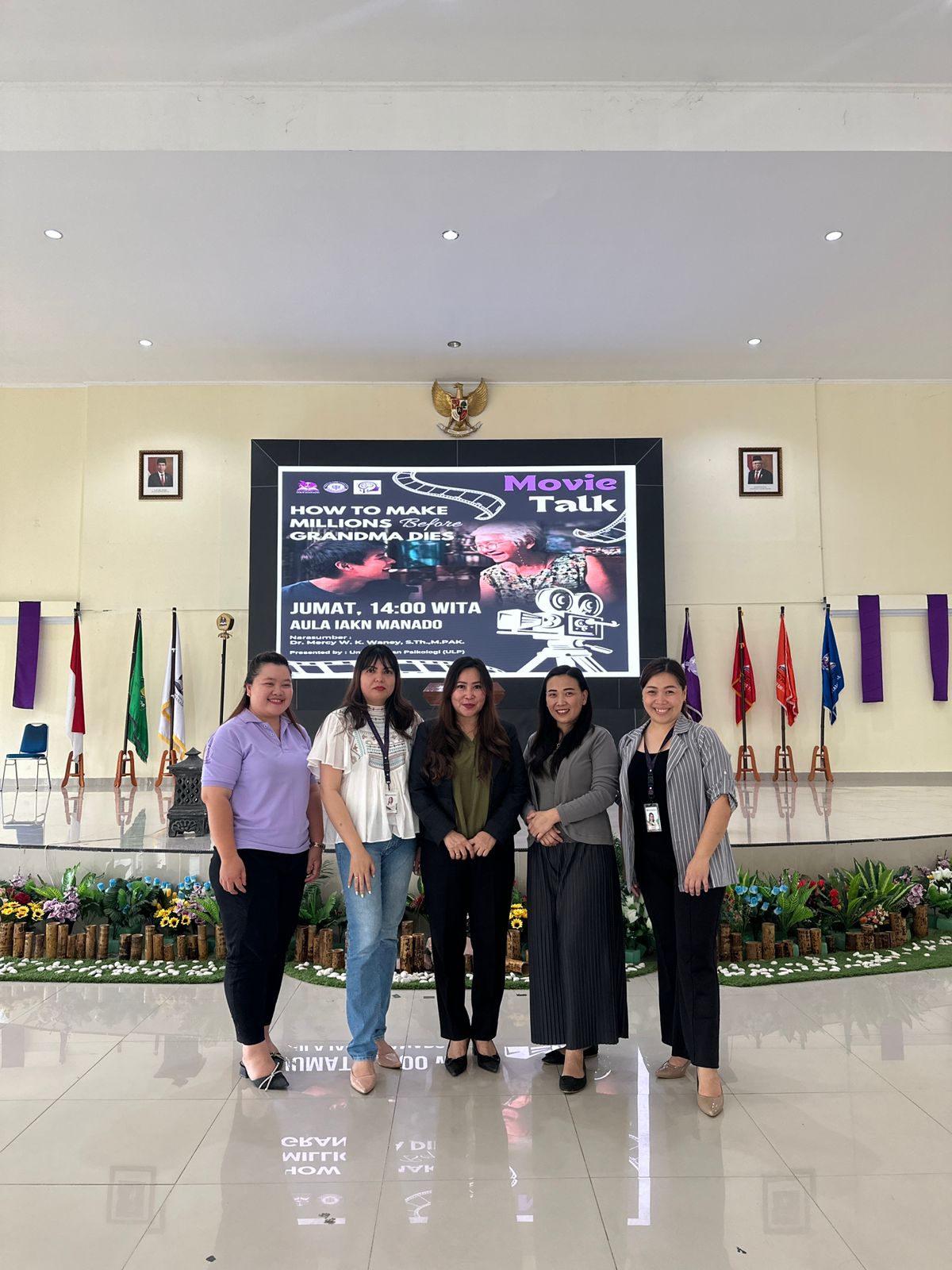 Bertempat di Aula Kampus IAKN Manado tepatnya pada hari jumat (07/06/24) Unit Layanan Psikologi Institut Agama Kristen Negeri Manado (IAKN) Berhasil melaksanakan Kegiatan Movie Talk “How To Make Millions Before Grandma Dies” Yang diikuti oleh 247 Mahasiswa dan beberapa dosen dari berbagai program studi dengan moderator Fienny M. Langi, M.Hum dan Pembedah: Dr. Mercy W. K. Waney, S.Th., M.PAK.