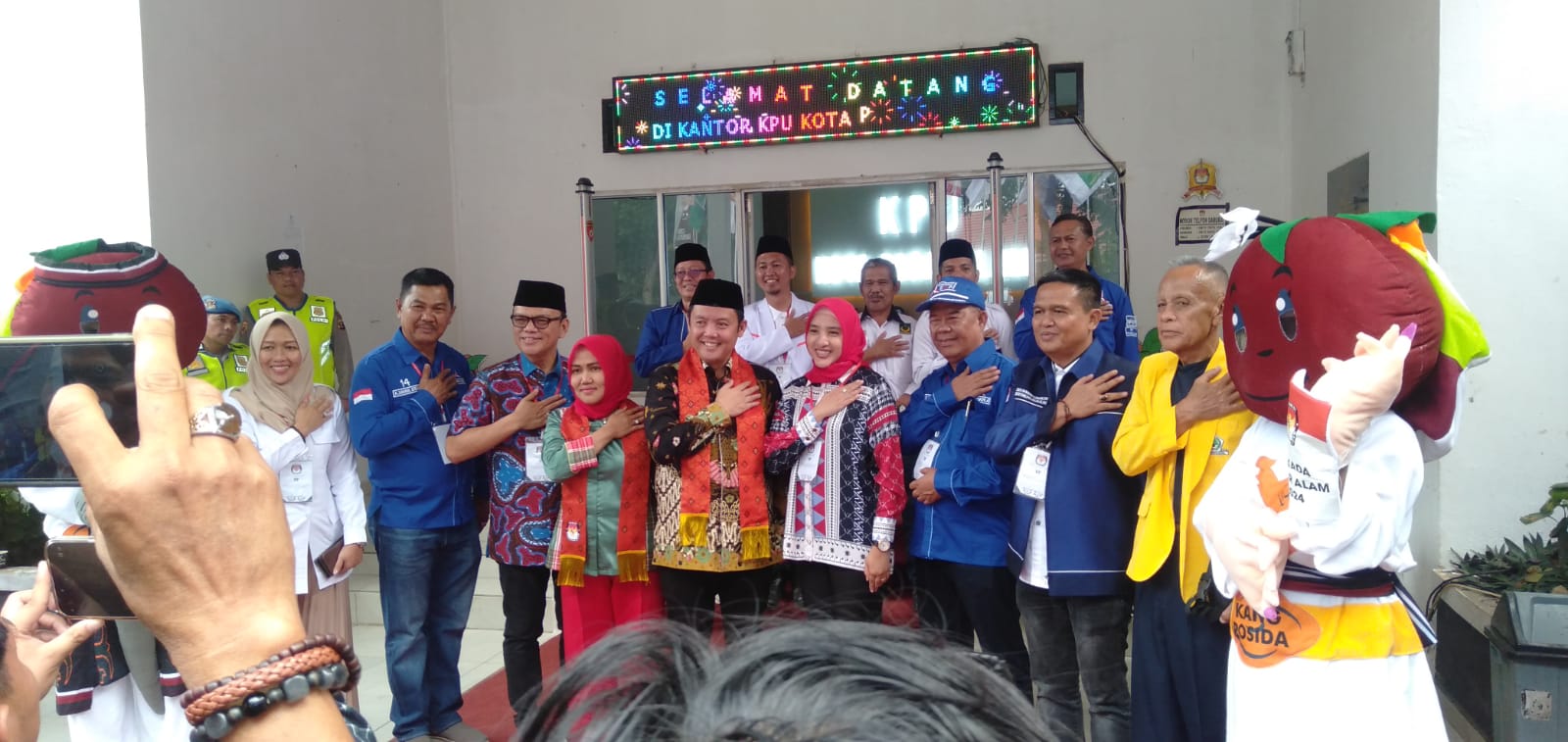 Masyarakat terlihat begitu antusias dan beriringan mengantarkan pasangan yang diusung oleh Partai Demokrat, Partai Keadilan Sejahtera (PKS), Partai Gerindra, Partai Golkar, Partai Amanat Nasional (PAN), PSI, GELORA, PBB, GARUDA, PKN, BURUH, menyerahkan berkas persyaratan di KPU.