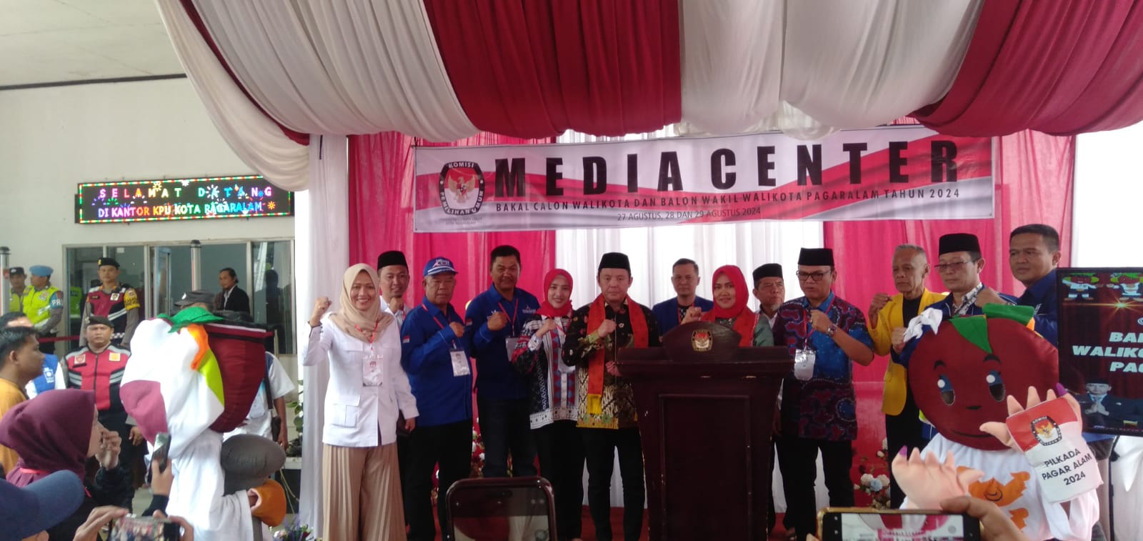 Ratusan masyarakat yang kompak memakai baju Hepy-Efsi yang bertuliskan Untuk Pagaralam Lebih Baik terlihat berbondong-bondong mengantarkan pasangan Calon Walikota Pagaralam, Provinsi Sumatera Selatan dengan sorakan gembira.