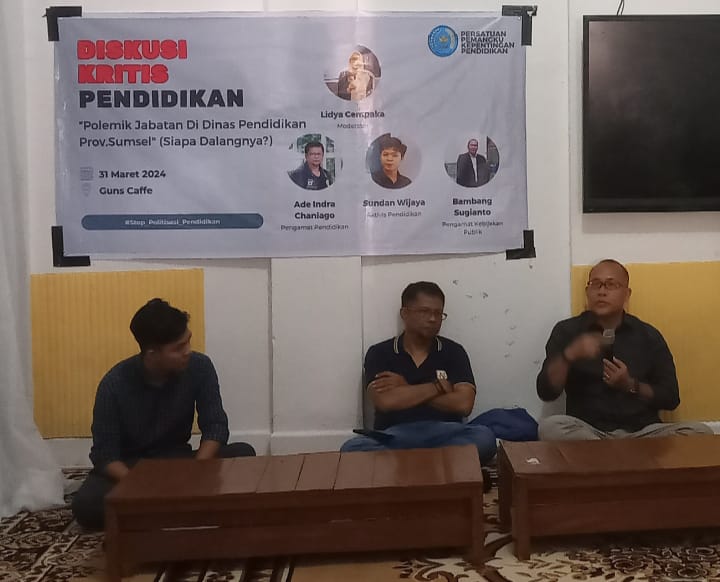 Diskusi yang mengusung tema “Polemik Jabatan di Dinas Pendidikan Provinsi Sumatera Selatan (Siapa Dalangnya,?) berlangsung di Guns Kafe, Jl. Tasik No.2 Talang Semut, Bukit Kecil, Palembang, Minggu (31/03/24).