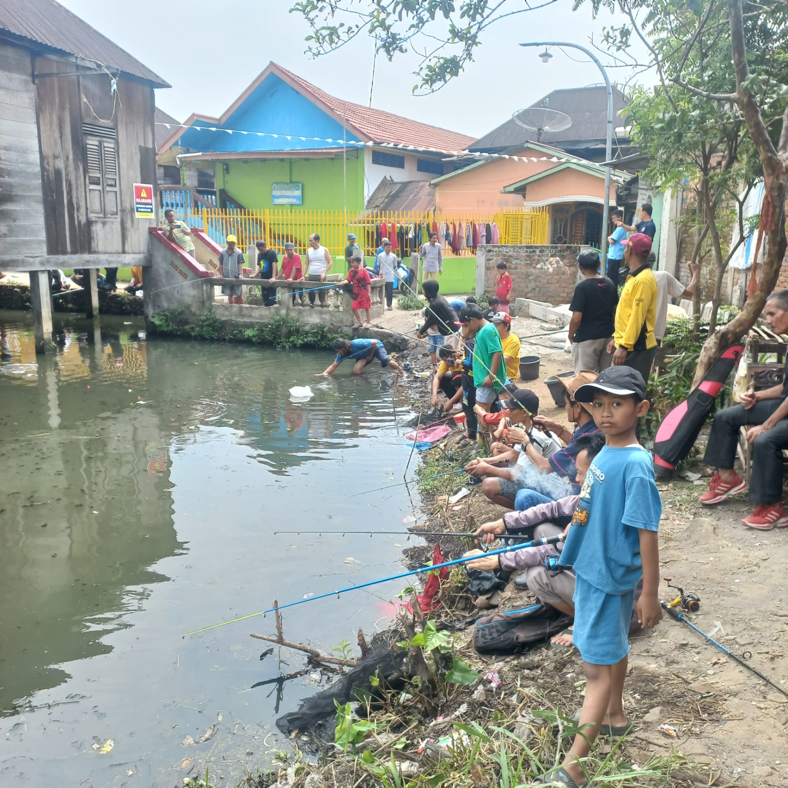 di kel.sukorejo banyak warga dari mana.mana yang datang menyaksikan pemancingan gratis