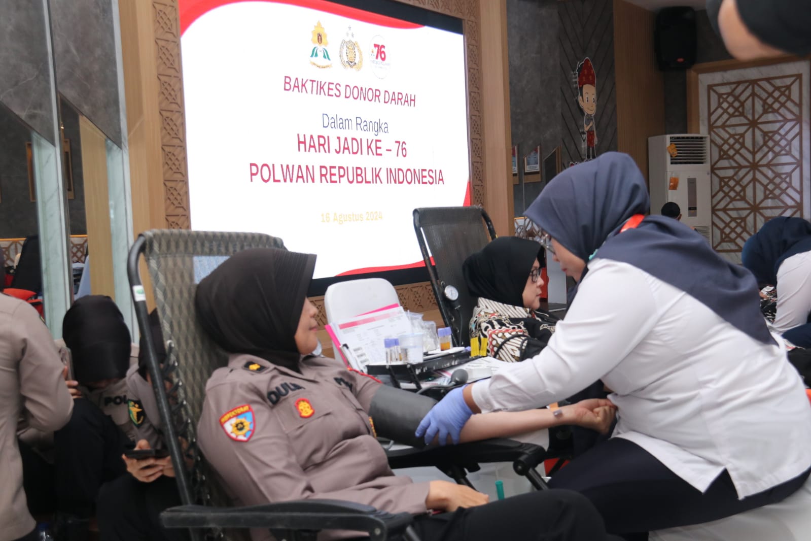“Sebelum pengambilan darah dilakukan cek tensi, dan cek golongan darah terlebih dahulu. Kegiatan donor darah ini digelar dalam rangka menyambut HUT Polwan ke-76 tahun 2024. Ini merupakan kegiatan pembuka, nantinya akan diikuti dengan kegiatan yang lainnya,“ kata Yunita