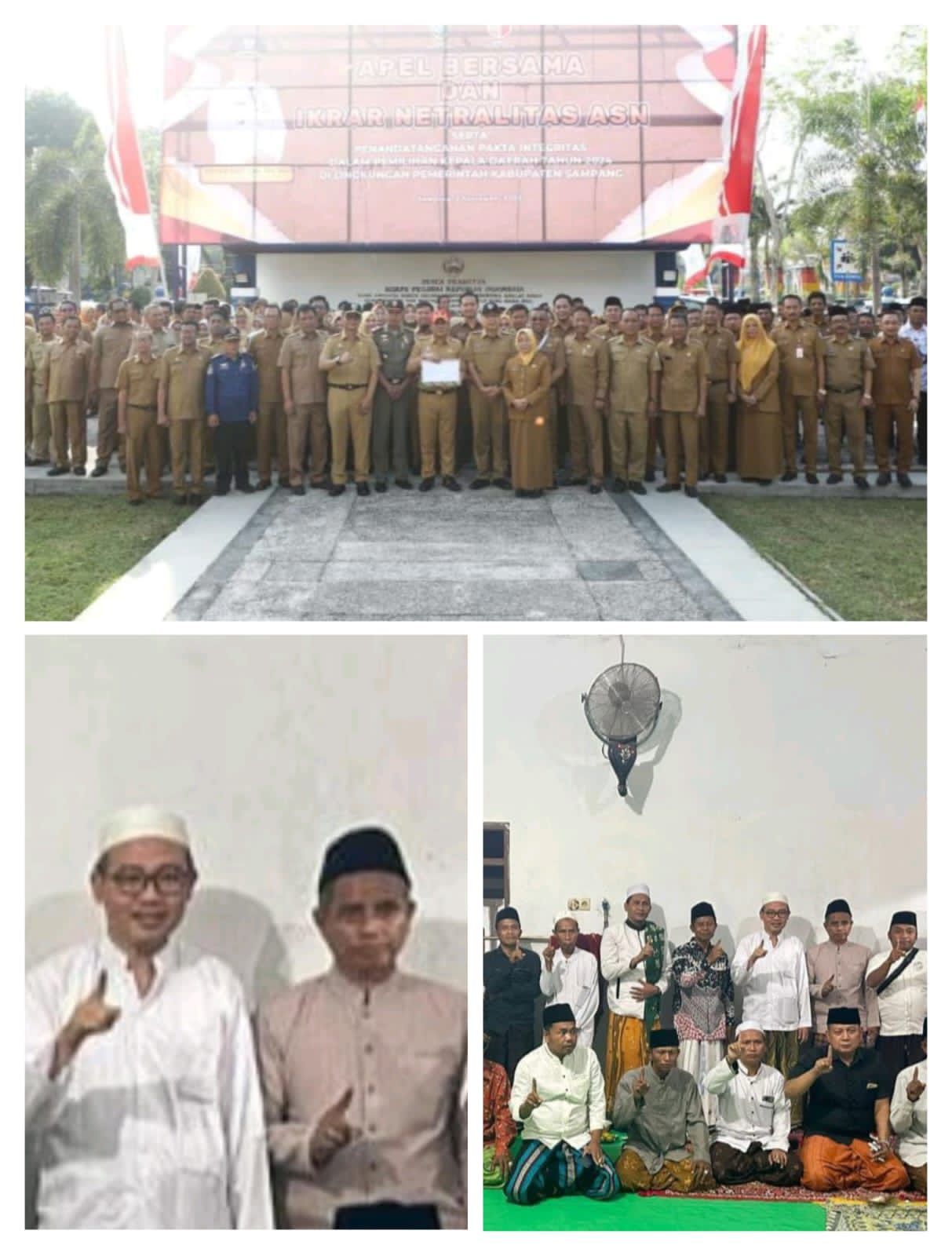 Terbaru beredar potongan gambar yang menunjukkan diduga salah satu oknum ASN dalam jabatan penugasan sebagai PJ kades di kabupaten Sampang, dengan secara terang terangan mengkampanyekan Paslon nomer urut 01 ramamak dan Abdullah Hidayat, diduga oknum tersebut secara terbuka hadir dalam acara konsolidasi pemenangan/Deklarasi dan berfoto bersama dengan menunjukkan pose Satu jari sebagai bentuk dukungan di samping Paslon Ra mamak.