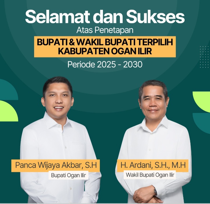 – DPC Persatuan Pewarta Warga Indonesia (PPWI) Kabupaten Ogan Ilir mengucapkan selamat atas penetapan hasil pleno KPU Ogan Ilir yang menetapkan Panca Wijaya Akbar, SH sebagai Bupati dan H. Ardani, SH, MH sebagai Wakil Bupati Ogan Ilir periode 2025-2030.