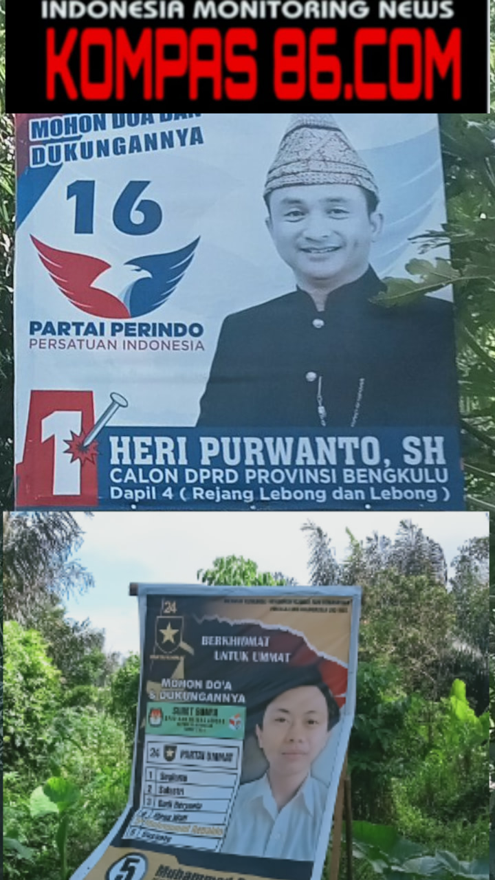 Pantauan kompas86, senin siang Atribut baliho kampanye terlihat masih Terpajang di jalan Air meles bawah dusun 5 kecamatan curup timur Seperti baliho bergambar caleg DPRD provinsi bengkulu Dapil 4 dari Partai Perindo Heri Purwanto SH bersama caleg Partai Ummat DPRD kabupaten Rejang lebong dapil 4 Muhammad Repaldo. Baliho berwarna biru dan hijau itu masih terpampang Saja.