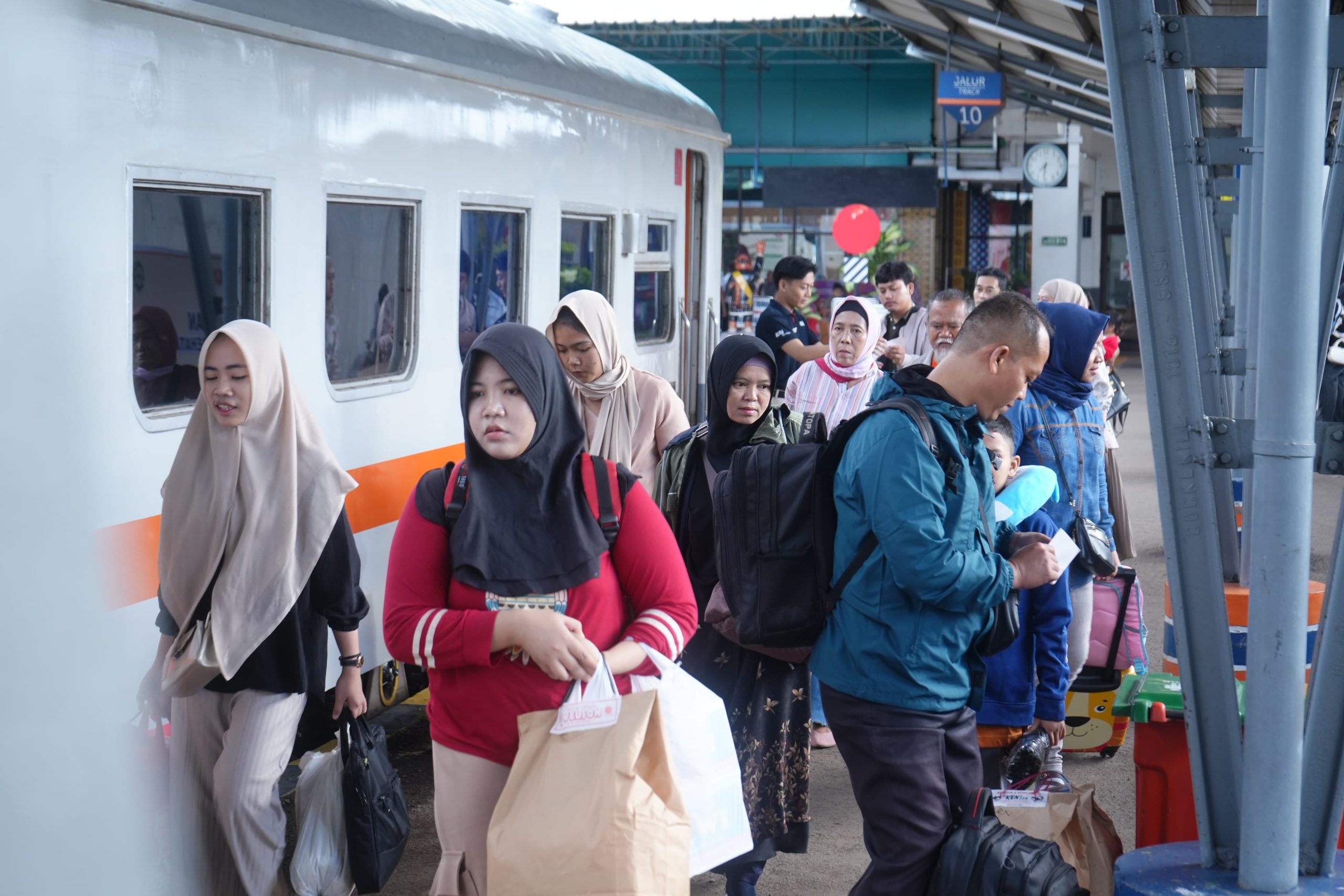 Palembang _ PT Kereta Api Indonesia (Persero) Divisi Regional III Palembang mencatat hingga hari kedua Lebaran Idul Fitri 1446 H jumlah pelanggan yang telah menggunakan jasa angkutan kereta api dari tanggal 21 Maret – 1 April 2025 telah mencapai 43.320 penumpang, sedangkan untuk volume penumpang pada hari lebaran kedua (H+1) Senin 1 April 2025 sebanyak 4.098 penumpang yang merupakan volume tertinggi selama masa angkutan Lebaran tahun 2025.