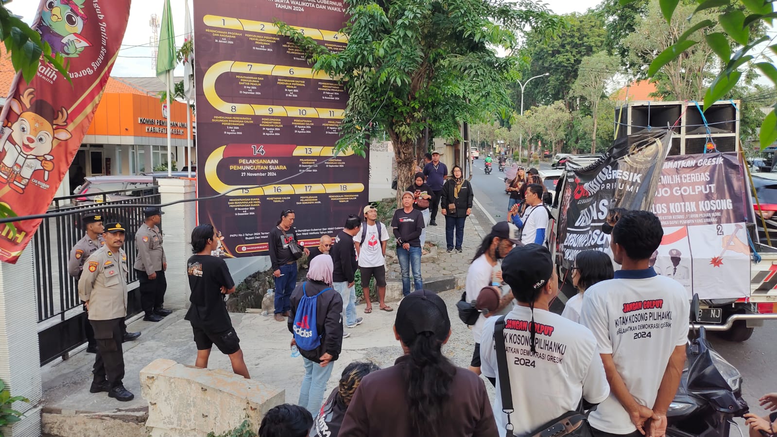 Aksi turun jalan ratusan relawan Demokrasi di mulai dari Bundaran GKB, mereka akan ngeluruk kantor Bawaslu dan KPU Kabupaten Gresik yang dianggap tidak netral. Sepanjang jalan mereka terus berorasi “Menangkan Kotak Kosong”, relawan juga mengingatkan perlunya netralitas dalam Pilbup (Pilihan Bupati) Gresik.