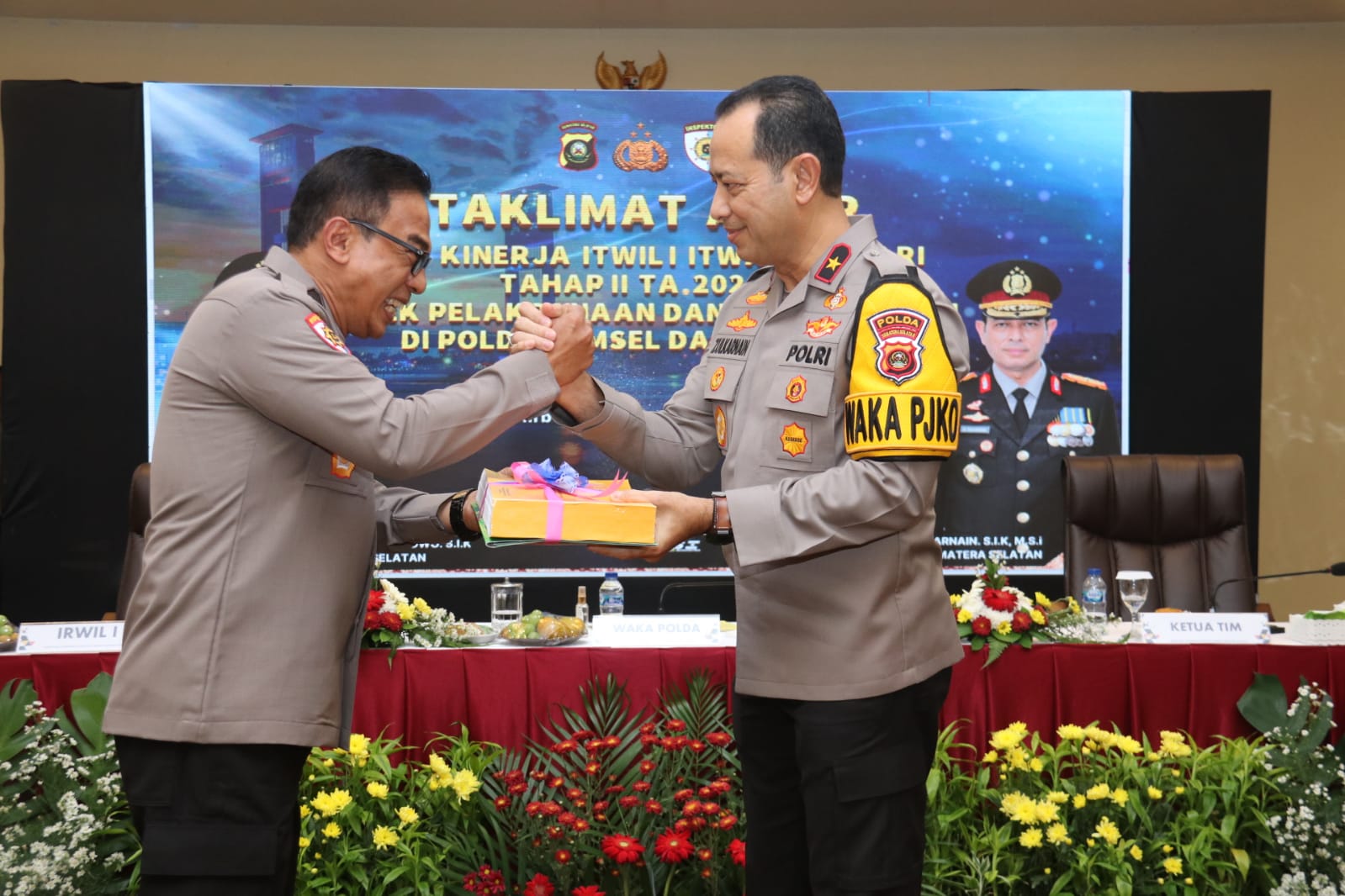 Palembang – Kapolda Sumsel Irjen Pol. A Rachmad Wibowo,SIk diwakili Wakapolda Sumsel Brigjen Pol M. Zulkarnain, SIK, MSi , resmi menutup kegiatan Taklimat Akhir Audit Kinerja Itwasum Polri, Tahap II T.A. 2024, terkait Aspek Pelaksanaan dan Pengendalian, di auditorium lantai VII Gedung Utama Presisi Polda Sumsel Rabu (11/09/2024).