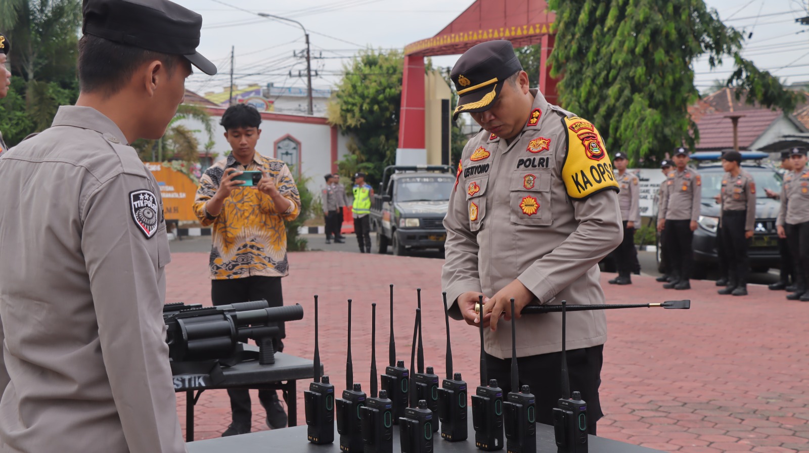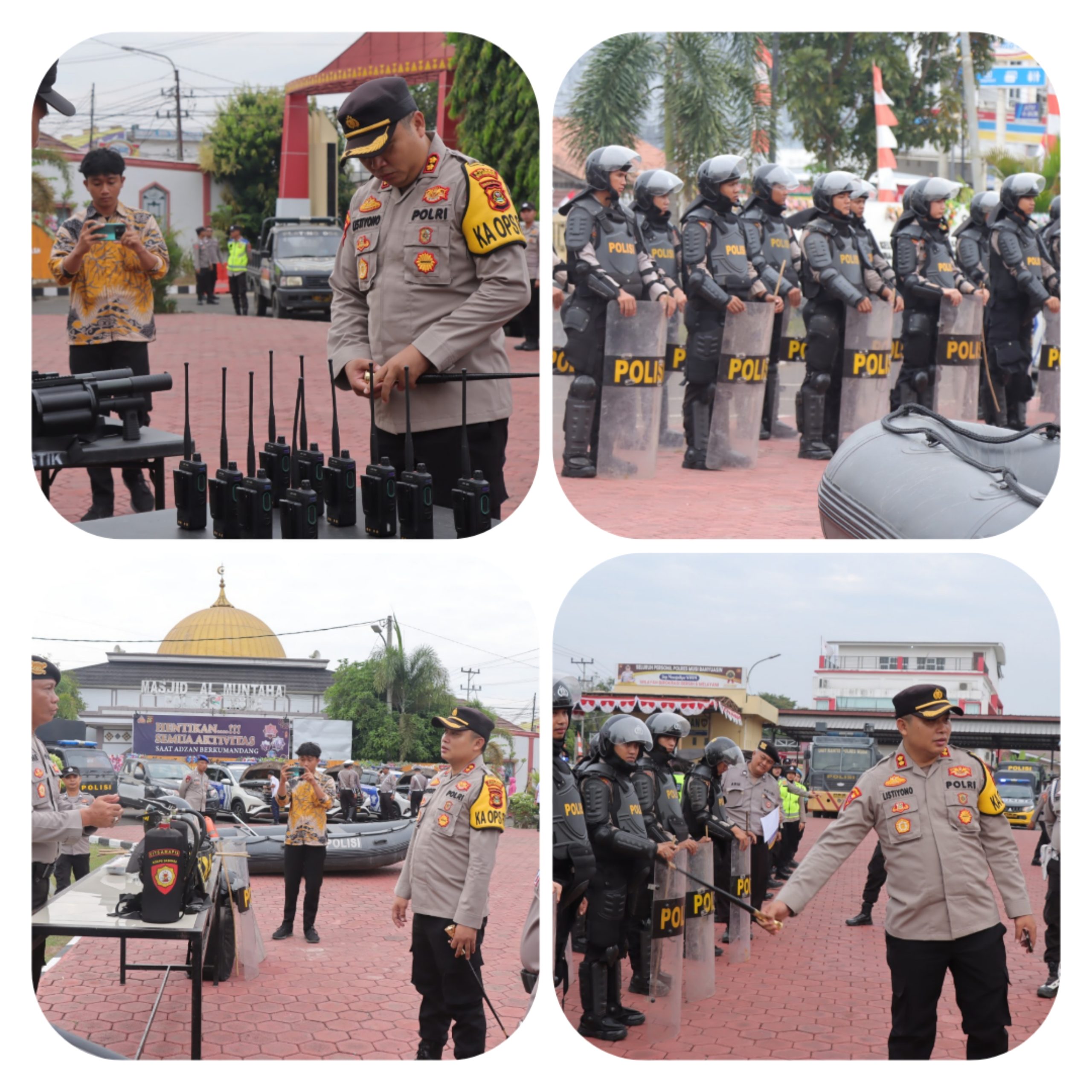 Tampak satu persatu peralatan di cek langsung oleh Kapolres dan hasil pengecekan semua peralatan yang disiapkan siap pakai.