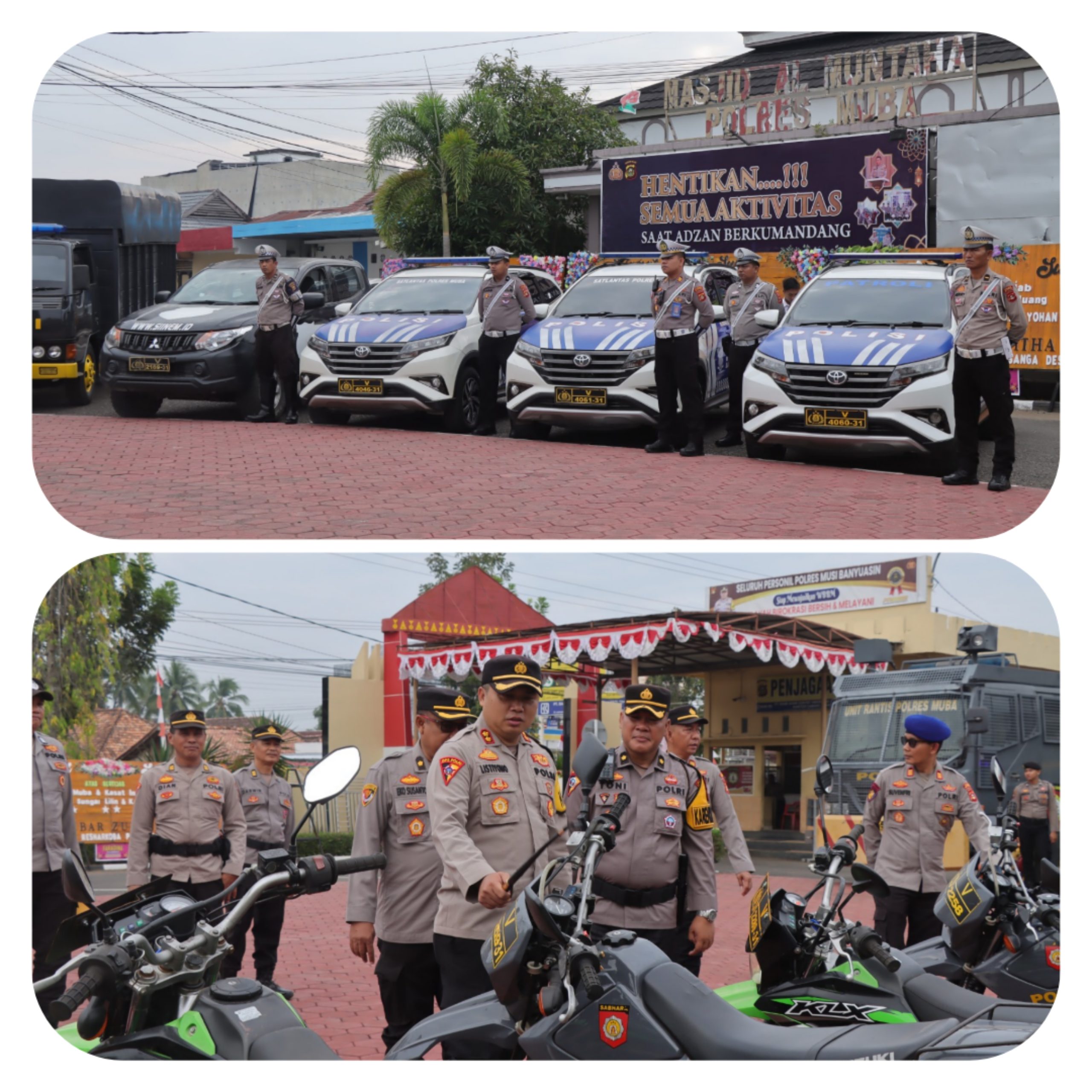 MUSI BANYUASIN.- Pastikan kesiapan Sarpras (sarana dan prasarana) serta Personil Polres Muba dalam menghadapi Pemilukada Serentak tahun 2024, pada hari ini Kamis (08/08/2024) Kapolres Muba Akbp. Listiyono Dwi Nugroho SIK. MH. Pimpin apel gelar Ranmor, Personil dan Peralatan di halaman apel Mapolres Muba.