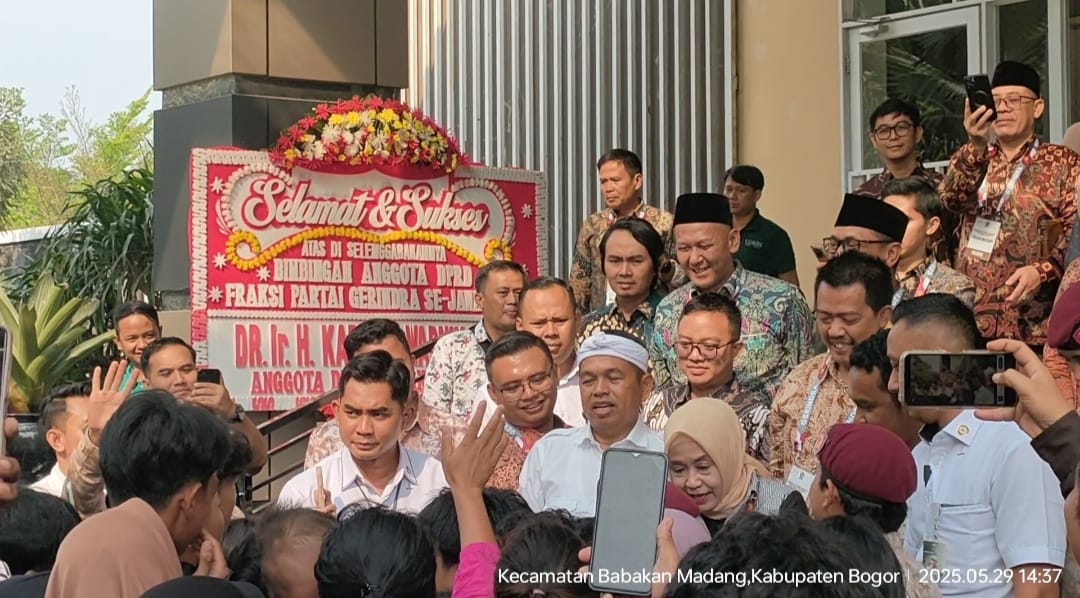 KOMPAS86.COM | Bogor – Gubernur Jawa Barat, Dedi Mulyadi (KDM), disambut antusias oleh masyarakat sekitar Hotel Lorin, kawasan Bakan Madang, Sentul, Bogor, seusai menghadiri kegiatan Bimbingan Teknis (Bimtek) DPRD Partai Gerindra se-Jawa Barat pada Kamis (29/05/2025).
