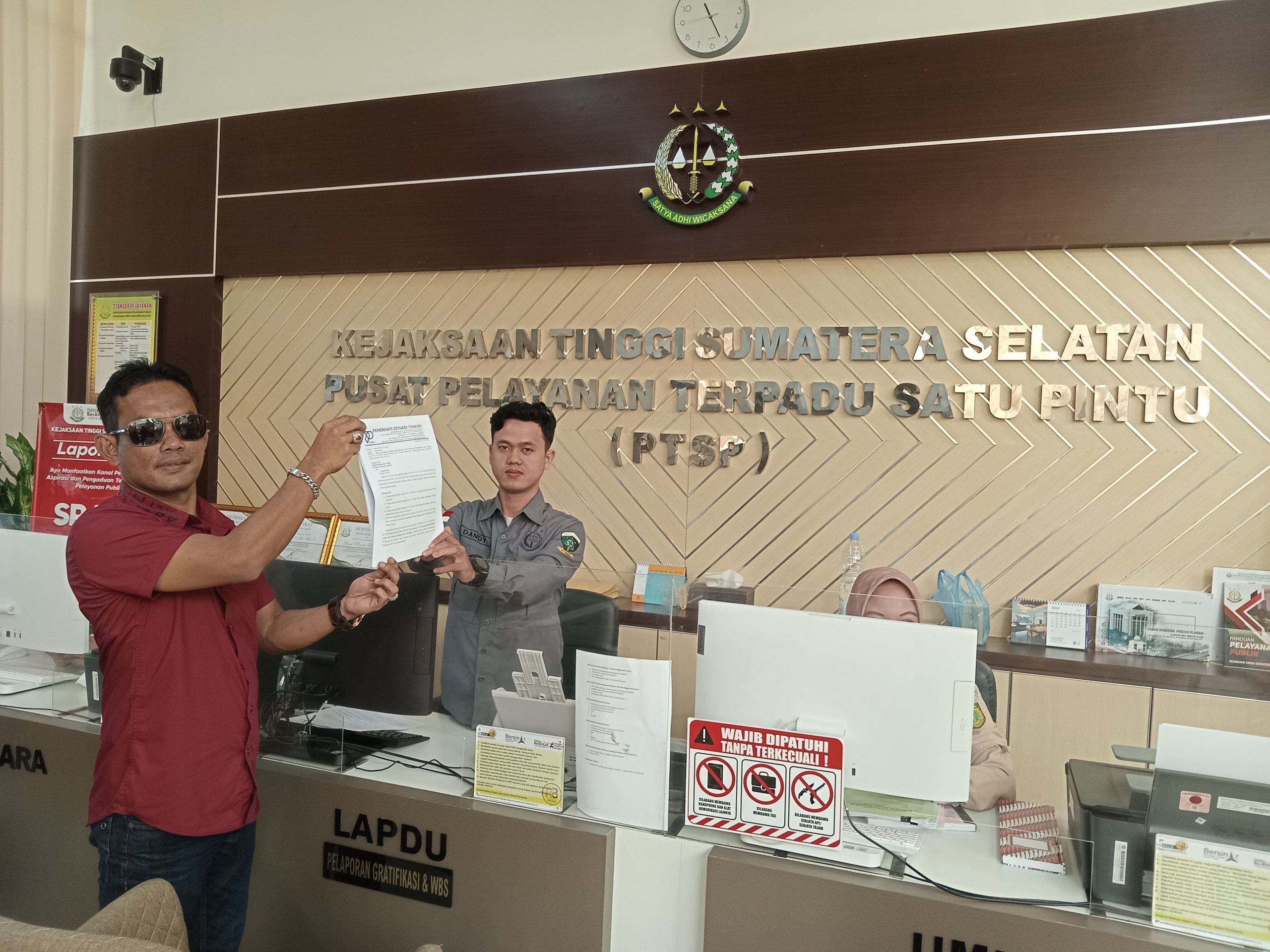 Palembang _ Ketua Lembaga Pemerhati Situasi Terkini (PST) Dian HS datangi Kantor Kejaksaan Tinggi Sumatera Selatan (Sumsel). Di Jalan Gubernur H. Bastari, Kecamatan Jakabaring, Kamis (04/07/2024). Maksud kedatangannya Dian HS membuat Laporan dan Pengaduan (Lapdu) ke PTSP Kejati Sumsel terkait dugaan-dugaan KKN yang terjadi di beberapa Dinas di Kota Palembang dan Kabupaten Muara Enim.