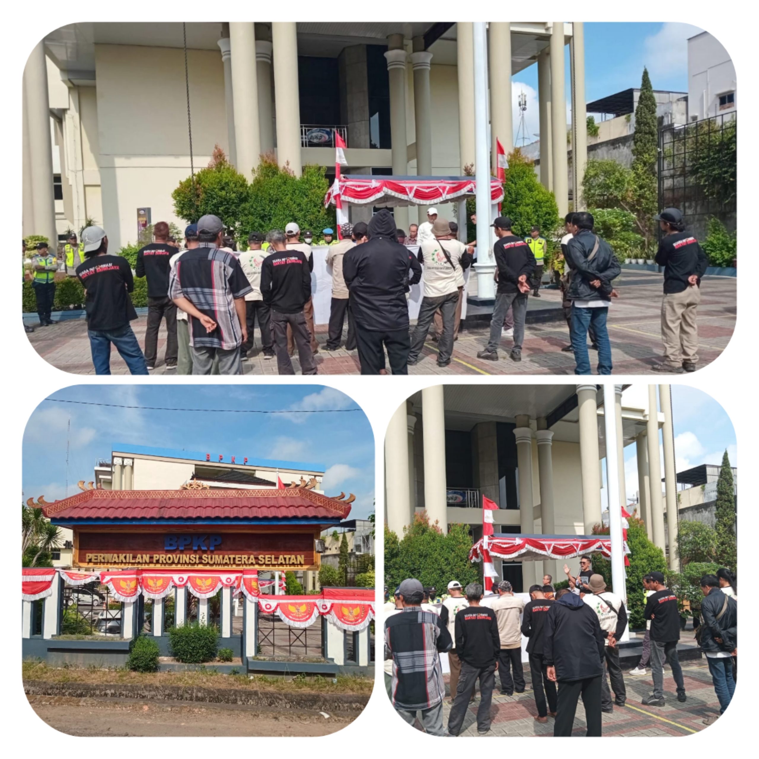 Palembang _ Puluhan massa Lembaga Suara Informasi Rakyat Sriwijaya (SIRA) unjuk rasa ke Kantor Badan Pengawasan Keuangan dan Pembangunan (BPKP) Sumatera Selatan (Sumsel), di Jl. Demang Lebar Daun, Rabu (07/07/2024).