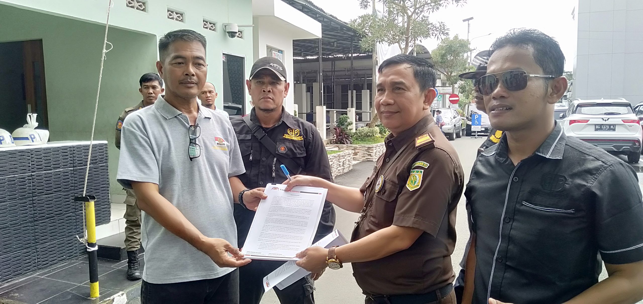 Massa aksi Garda Prabowo DKD Provinsi Sumsel di terima oleh Kajari Palembang yang di Wakili oleh Marwa Sekretariat Kejari Palembang.
