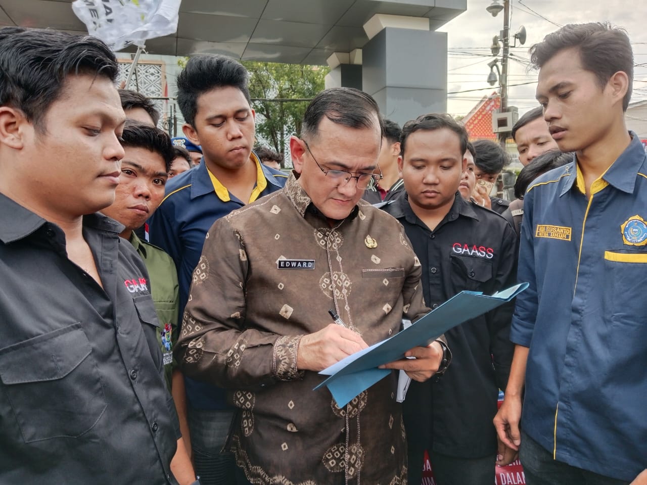Sementara, Sekda Pemerintah Provinsi Sumsel Edward Candra menanggapi, sambil menandatangani surat tuntutan yang disampaikan oleh mahasiswa, dirinya memberikan ruang bagi perwakilan mahasiswa untuk berdialog bersama.