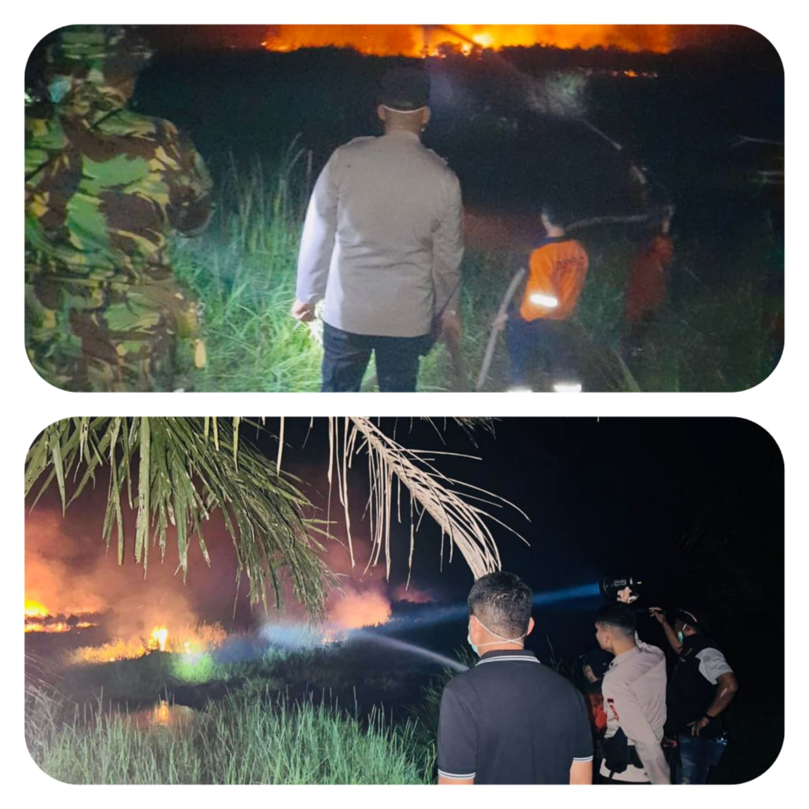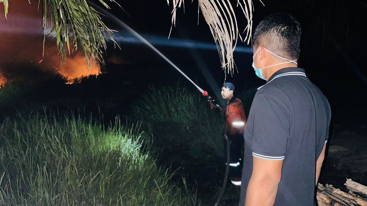 “Sumber api masih kita selidiki ya, yang jelas saat ini (tadi malam) sudah berhasil kita padamkan. Cuma kendala kita ini tidak ada akses jalan menuju titik api. Untung ini ada kanal yang lebar dan cukup dalam sehingga api tidak meluas lagi terhalang kanal,” urainya seraya mengucapkan terimakasih kepada petugas yang telah bersinergi dan sigap memadamkan api.