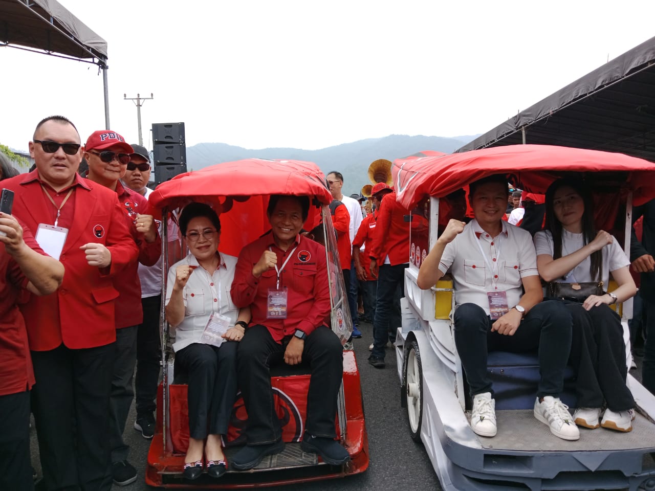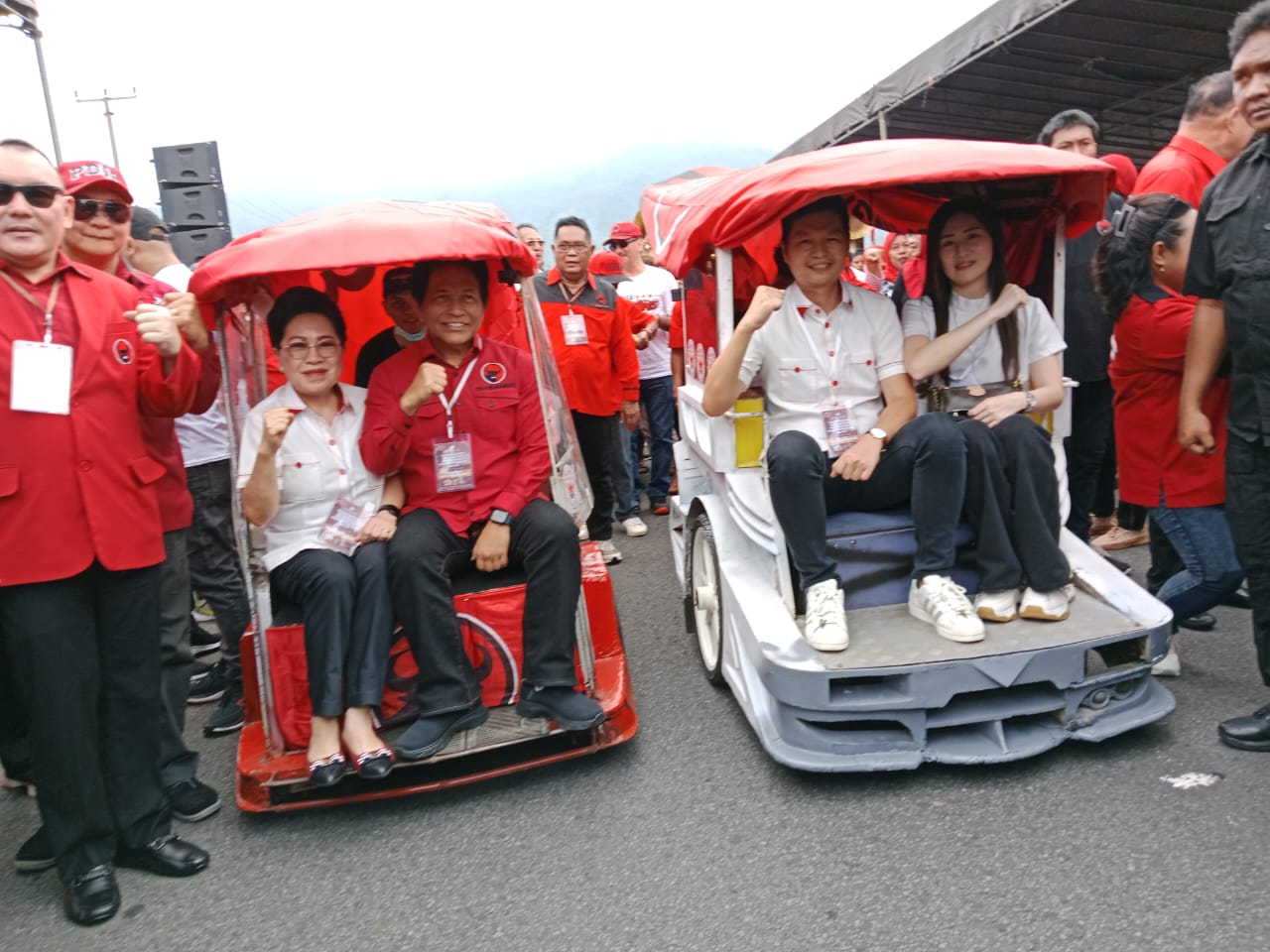 Pasangan Tamang melakukan ibadah pelepasan di Kantor Sekretariat DPC PDIP langsung melakukan konvoi melewati jalan Bolivard menuju pangung yang disediakan.