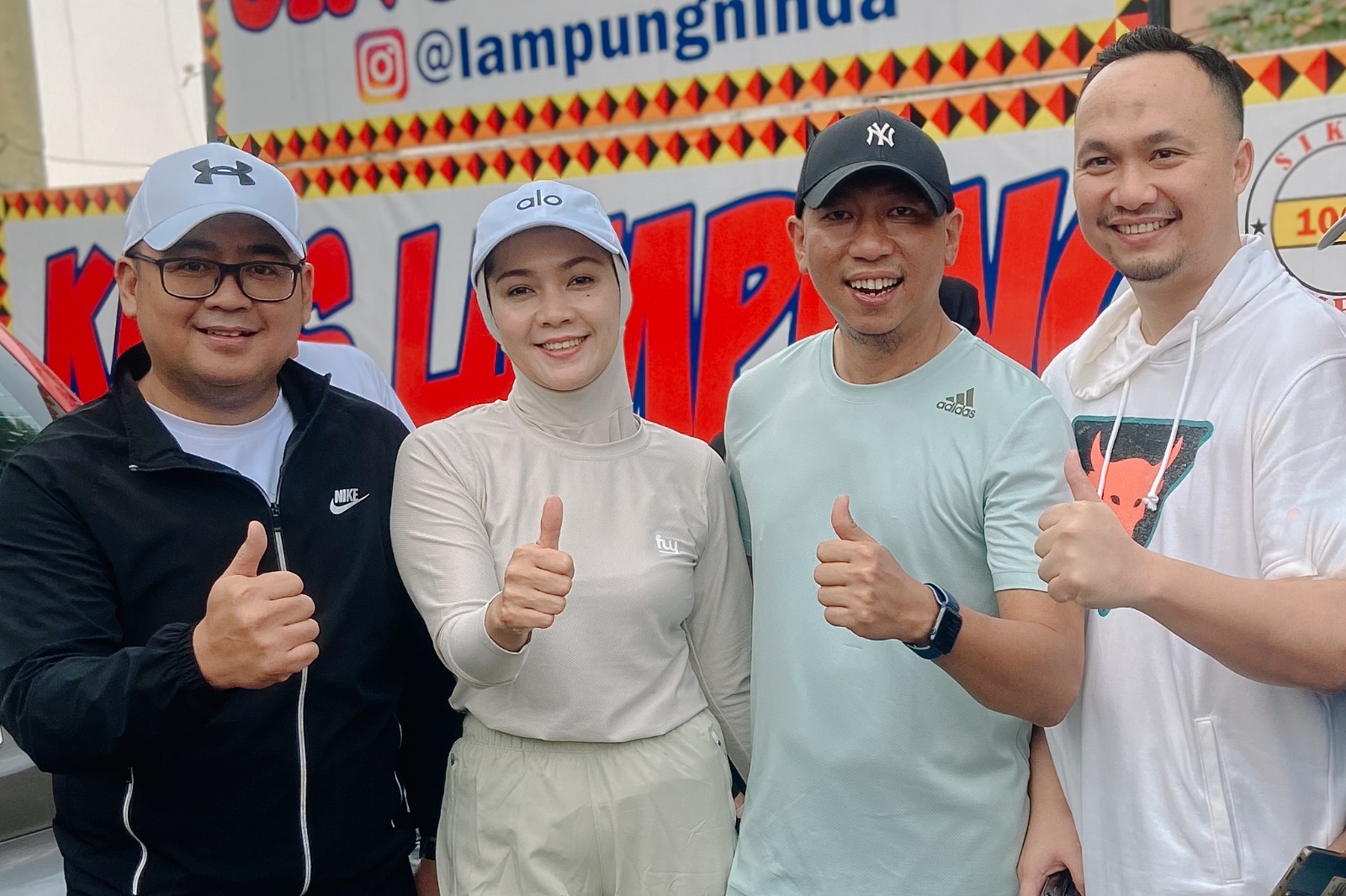 RMD sapaan akrab Iyai Mirza Calon Gubernur Lampung didampingi Pandu saat menghadiri acara menjajakan sarapan 2000 rupiah yang di adakan oleh Relawan Bhaidosto Rumah UMKM Minggu Pagi 23/06/2024 di Jalan Radin Inten Bandar Lampung.