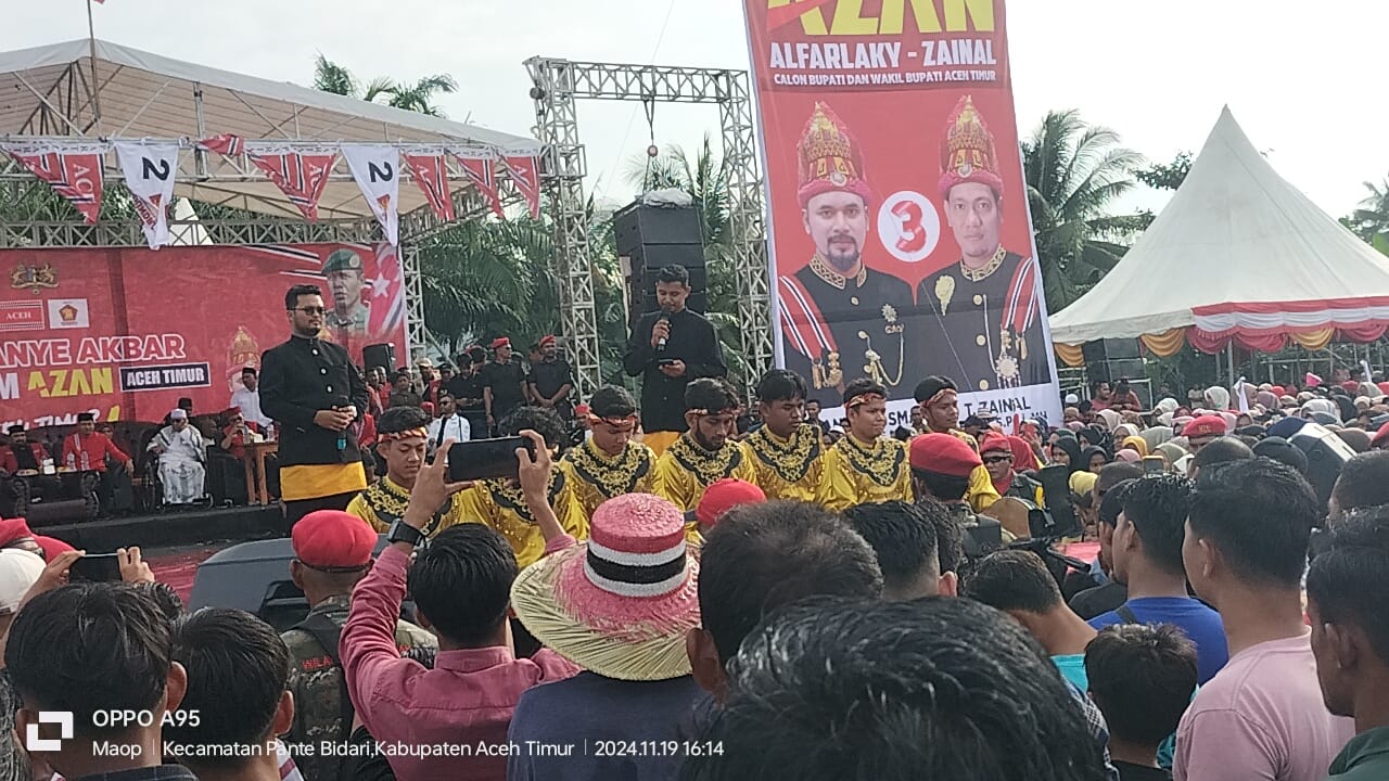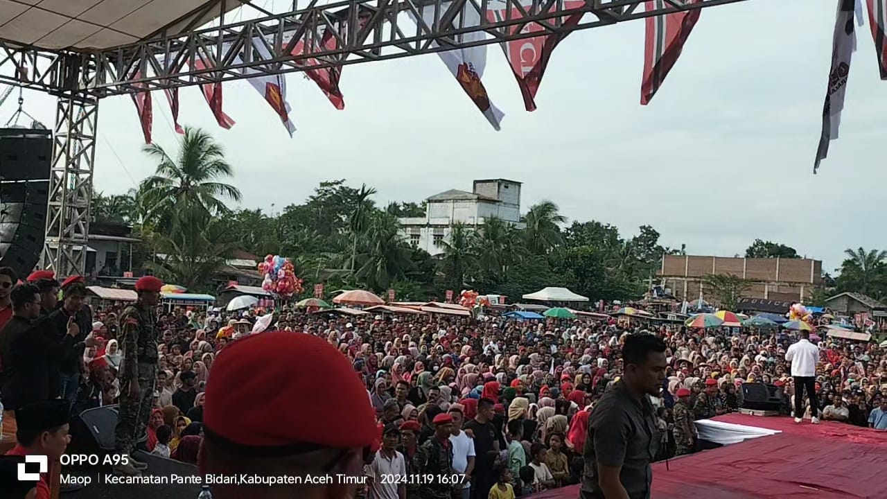 Aceh Timur – Kompas86.com__, 19/11/2024. Ribuan Masyarakat Aceh Timur dan KPA Sagoe Meuh Ijoe siap memenangkan pasangan Cagub-cawagub (Muzakir Manaf dan Fadlullah) dan Cabup-cawabup (Iskandar Alfaraki dan Zainal Abidin) dari fraksi Partai Aceh dan Partai Gerindra.