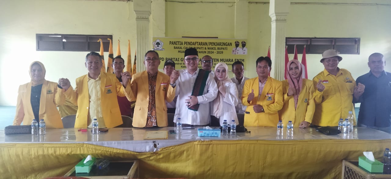 “Hal ini sudah saya realisasikan dengan telah mendaftarkan diri mengikuti proses penjaringan calon Bupati melalui partai Golkar dan PAN,untuk itu kepada masyarakat Kabupaten Muara Enim mohon partisipasinya agar apa yang kita cita-citakan bersama akan tercapai”,imbuhnya.