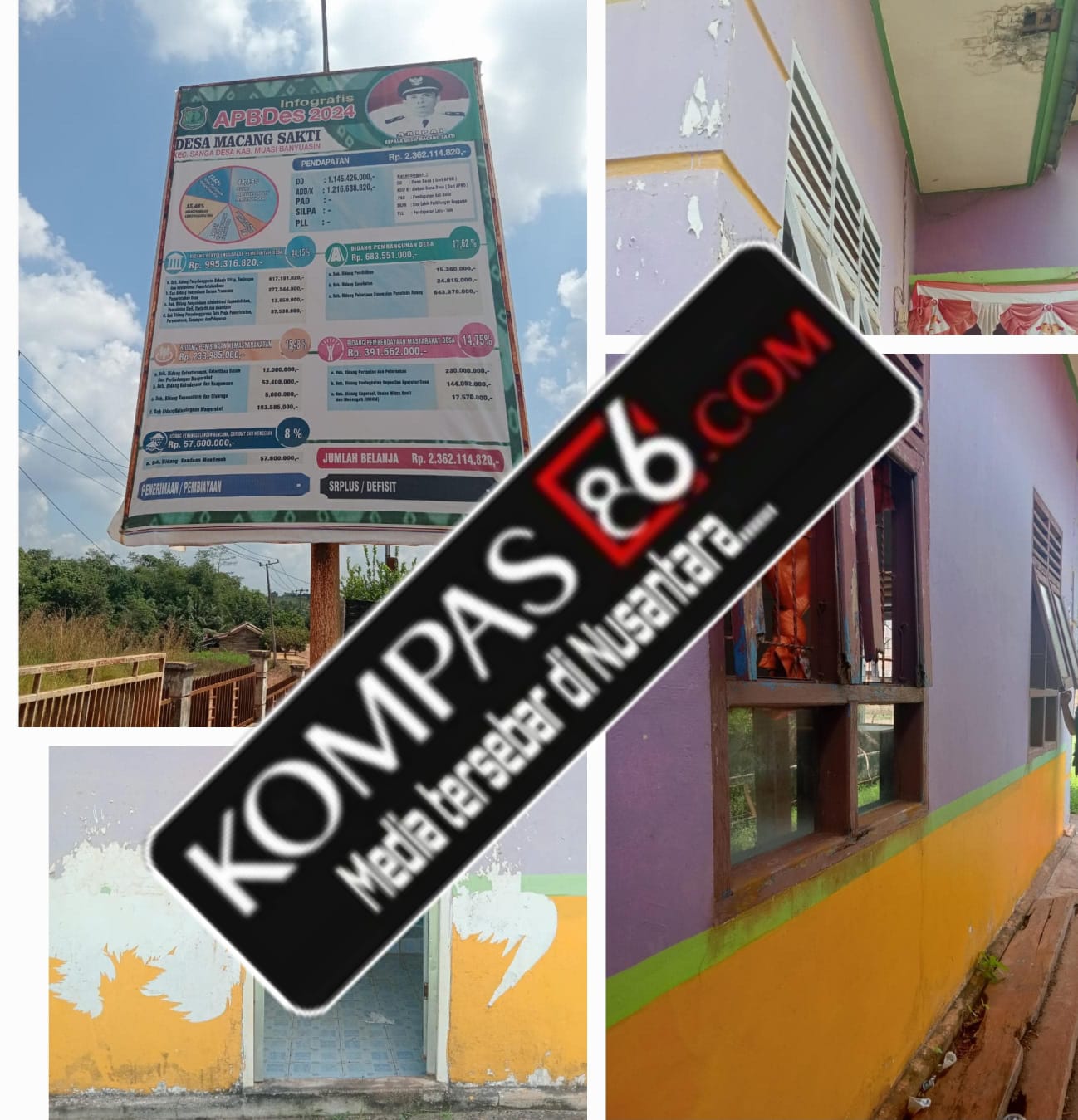 Pantauan dari berapa media dan lembaga yang tak sengaja datang 03.06.2025 kunjungi kantor desa macang sakti, tidak ada pelayanan atau perangkat desa atau kepala desa di kantor desa masih hari kerja.Dan terlhat Plafon berlubang, jendelah yang rusak toilet/wc yang berkarat di kantor Desa, juga banyak fasilitas yang rusak.