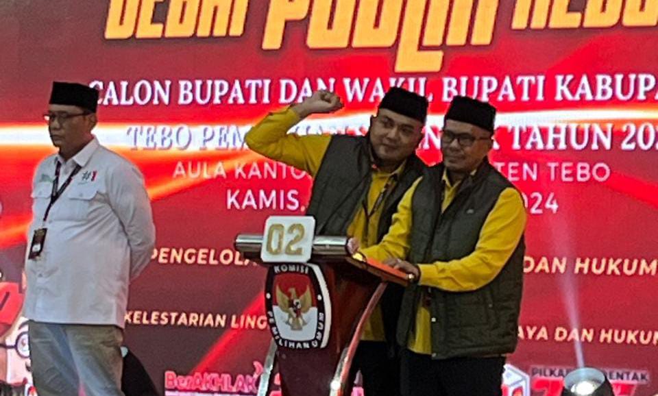 Sementara tema debat publik ke-2, Berkaitan dengan Hukum, Lingkungan serta Energi dan Sumber Daya Alam. “apakah saudara bisa menjamin ketika Anda menjabat tidak ada KKN sementara adik kandung saudara merupakan ketua DPRD Kabupaten Tebo, kemudian ayah saudara merupakan pengusaha di Kabupaten Tebo”