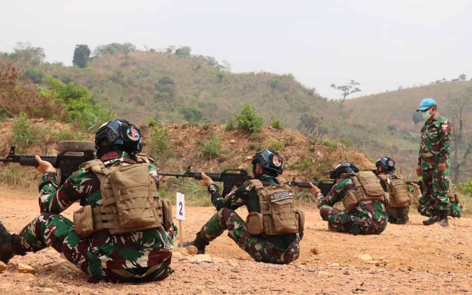 Dalam rangka memelihara dan mengasah kemampuan menembak prajurit, personel Satgas Kizi TNI Konga XXXVII-J melaksanakan latihan menembak di lapangan tembak Kasai. Bangui.