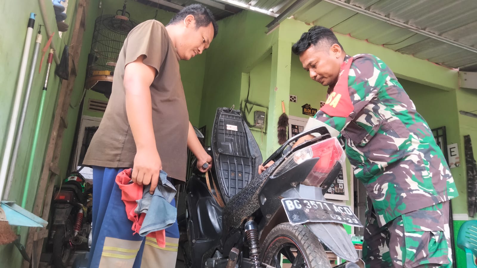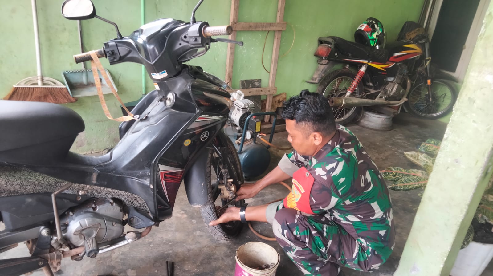 Menjaga kesejahteraan dan membangun hubungan positif antara militer dan masyarakat, Sertu Nugroho Babinsa Koramil 430-05/Betung Kodim 0430/BA tularkan mekanika kepada anak – anak muda warga Desa Binaan.