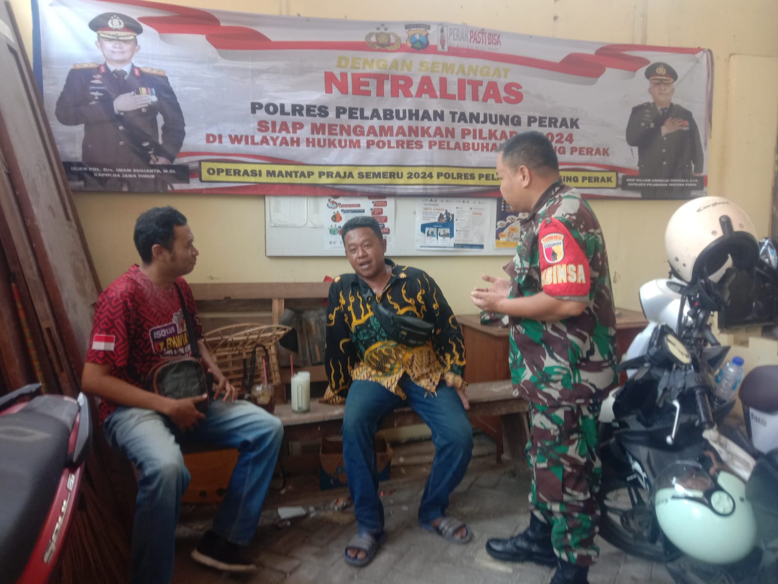 Surabaya |Jatim | Koptu M. Ismanto, Babinsa Kelurahan Pegirian, melaksanakan kegiatan komunikasi sosial (Komsos) dengan Bapak Tohir, staf RW 01 Sidorame. Kegiatan ini bertujuan untuk memperkuat peran aktif masyarakat dalam menjaga keamanan dan mendorong warga untuk tetap menjalin silaturahmi, meski ada perbedaan pilihan politik selama Pilkada 2024, minggu (13/10).