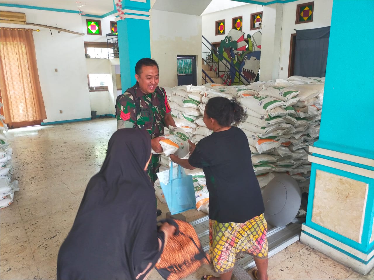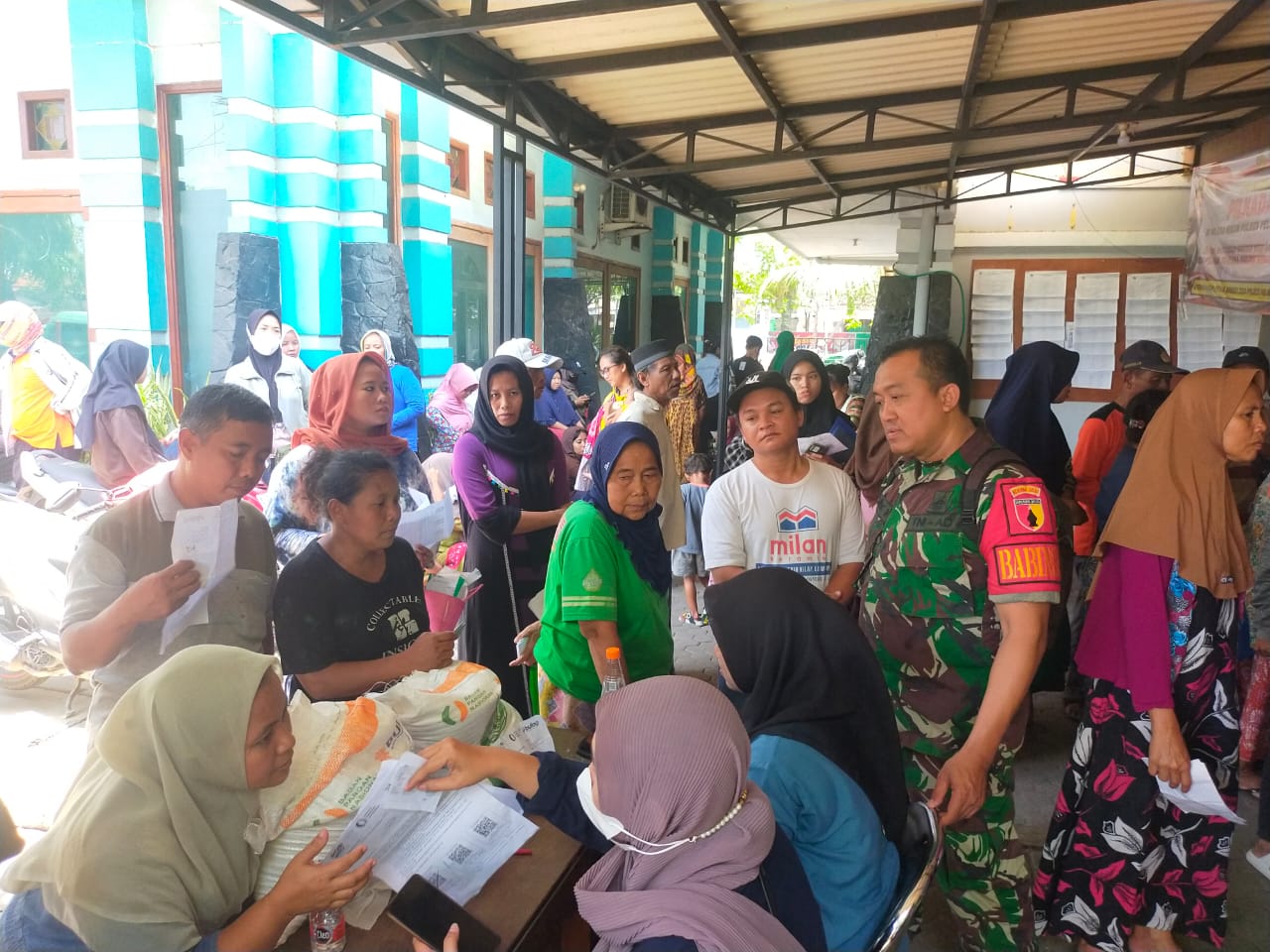 Surabaya |Jatim | Babinsa Kelurahan Sidotopo, Koramil 0830/02 Semampir, Kopka Bambang, melaksanakan pengamanan dan pendampingan dalam penyaluran bantuan beras 10 kg per keluarga kepada 1.820 penerima di Kelurahan Sidotopo, Kecamatan Semampir, selasa (15/10).