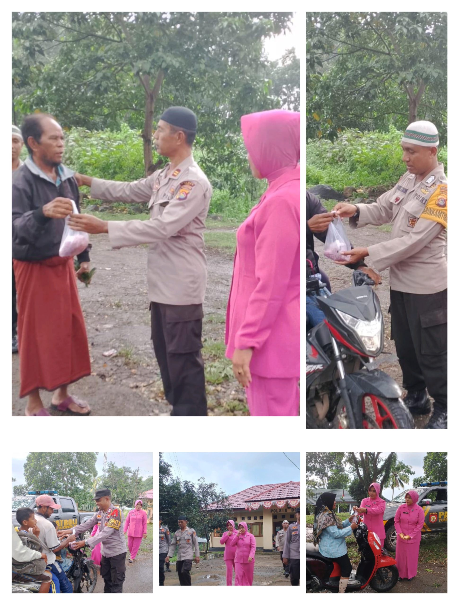 Lima puluh bungkus takjil berbuka puasa dibagikan secara gratis kepada masyarakat pengguna jalan serta warga sekitar Mapolsek Donggo.