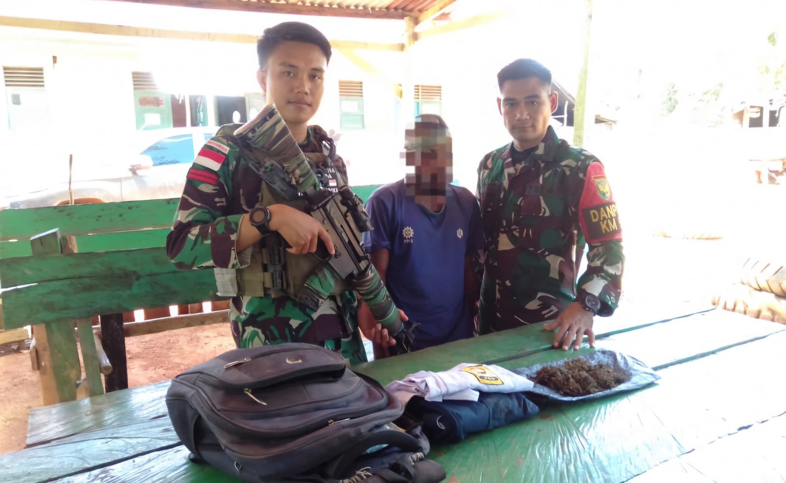 Boven Digoel Satgas Yonif 144/JY Pos KM 53 berhasil menangkap pelaku yang membawa paket ganja kering saat melaksanakan kegiatan Ambus di KM 47, Distrik Jair, Kabupaten Boven Digoel, Papua Selatan. Jumat (15/11/2024).