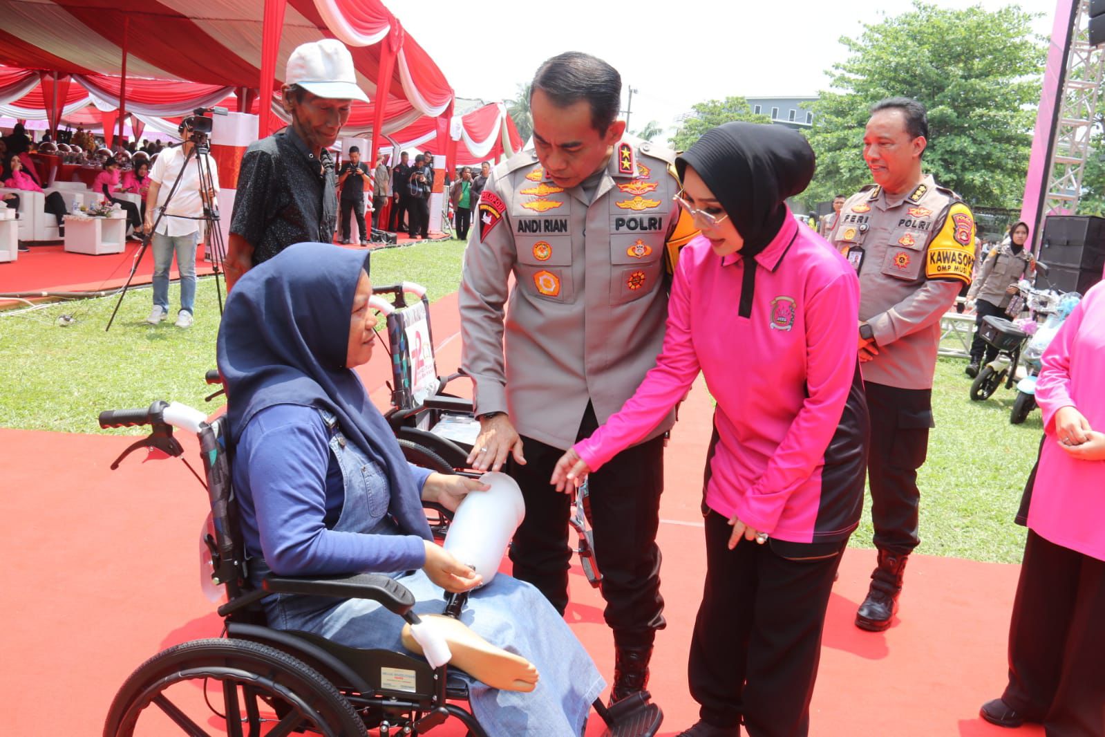 “Saya ucapkan juga terima kasih kepada mangcek dan bicek yang sudah bersedia hadir, meramaikan bakti sosial acara Hari Kesatuan Gerak Bhayangkari yang ke-72 ini. Kita bersyukur masih diberikan kesehatan untuk bersama-sama hadir di sini,” tambah Andi Rian, lulusan Akpol 1991.