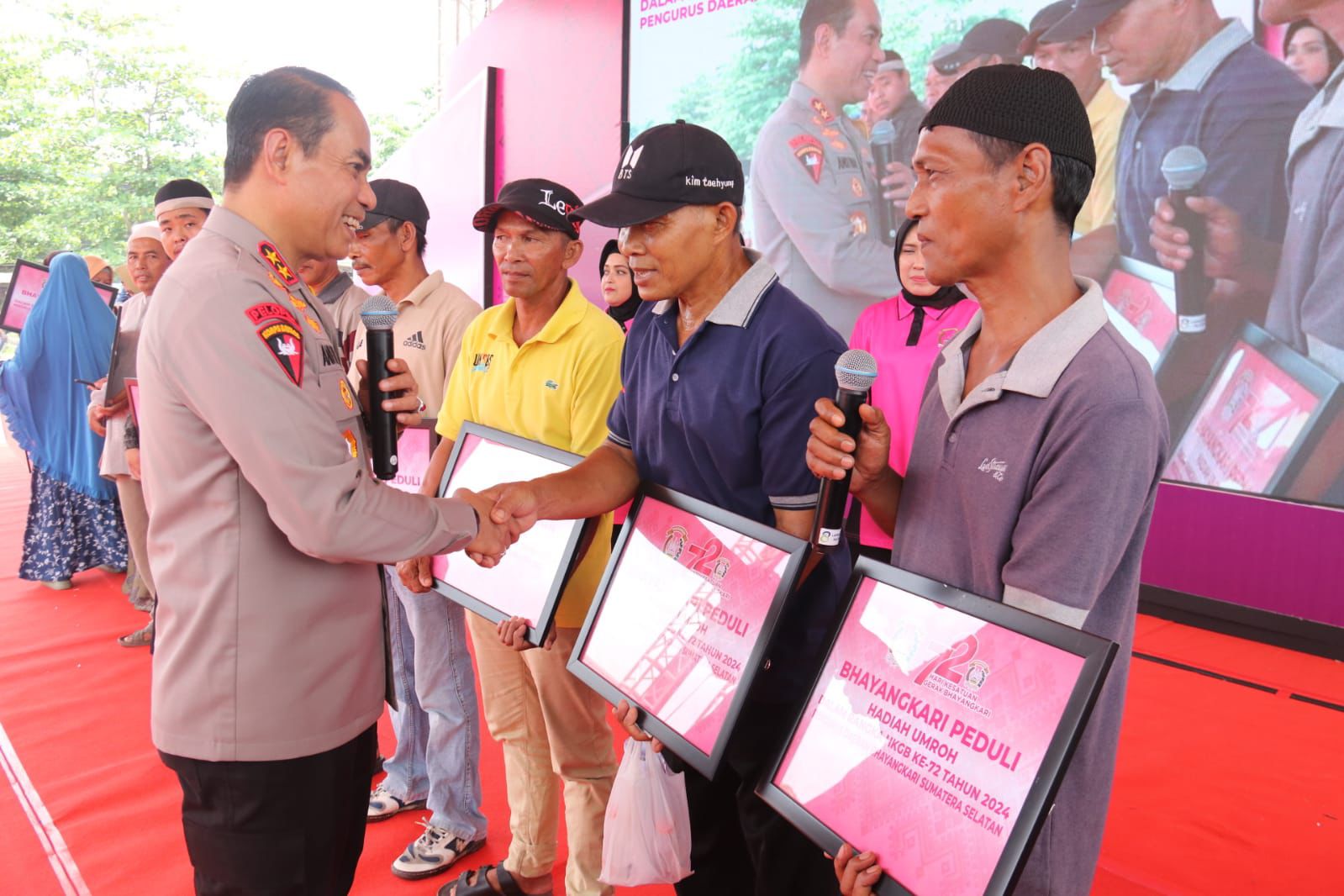 PALEMBANG – Puncak Hari Kesatuan Gerak Bhayangkari (HKGB) ke-72 Tahun 2024, Pengurus Bhayangkari Daerah Sumsel melakukan bakti sosial dan bakti kesehatan kepada 5.000 masyarakat.