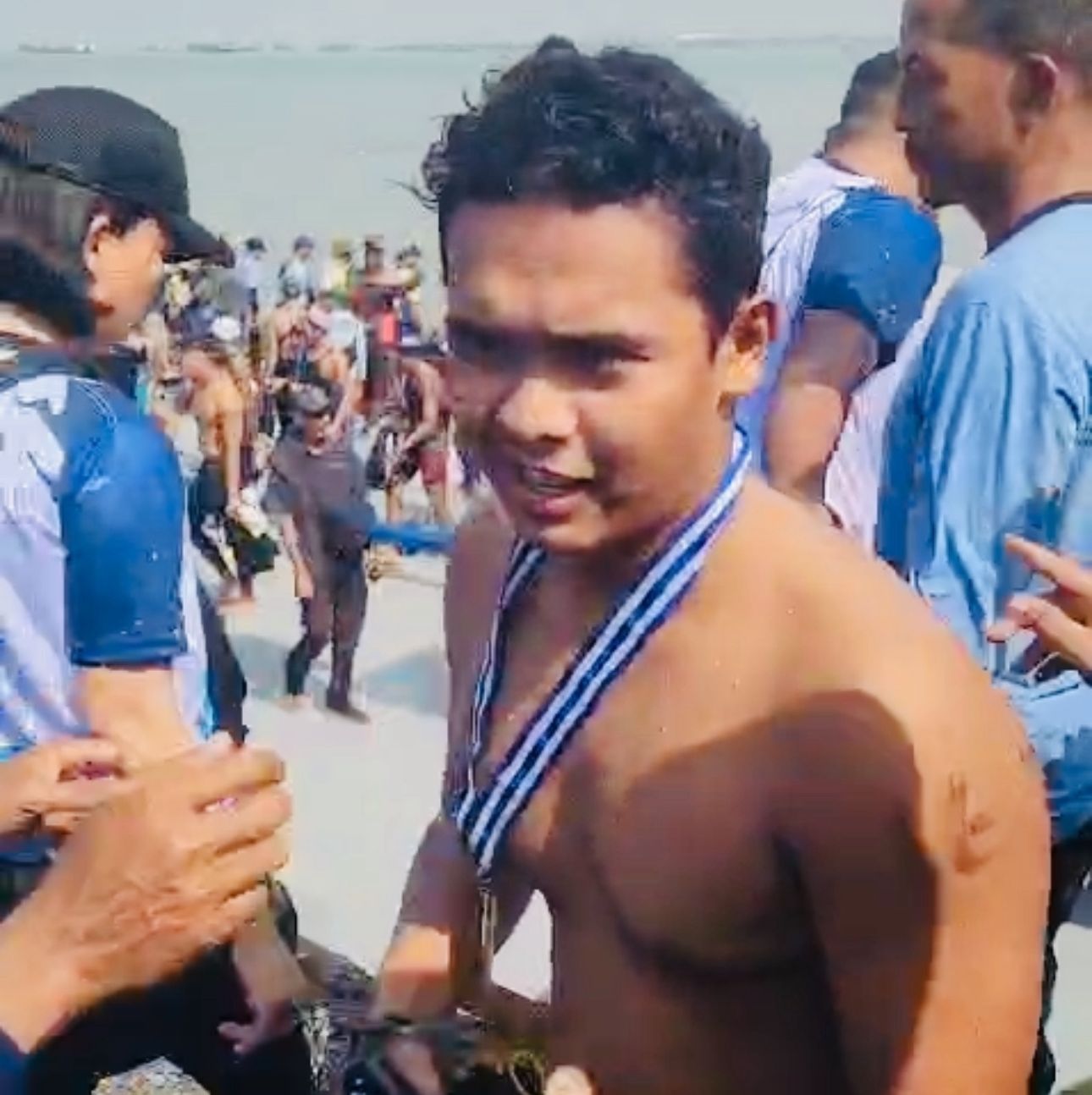 SURABAYA – Personel Ditpolairud Polda Sumsel, Bripda Fahri Samsudin torehkan prestasi membanggakan pada lomba kejuaraan renang memperebutkan piala Kasal, sempena ulang tahun Komando Pasukan Katak (Kopaska) TNI AL ke 62 tahun 2024 di Surabaya Jawa Timur.