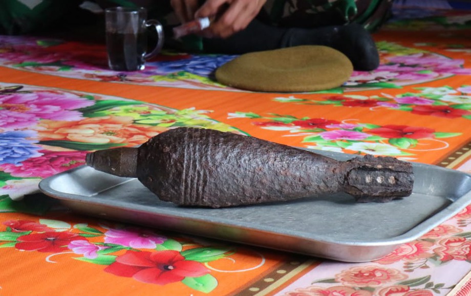 Seorang warga perbatasan, tepatnya di Desa Trang Baru telah menemukan sebuah mortir lama yang masih aktif di kampungnya, untuk kemudian diserahkan ke Satgas Pamtas Yonarhanud 12/SBP