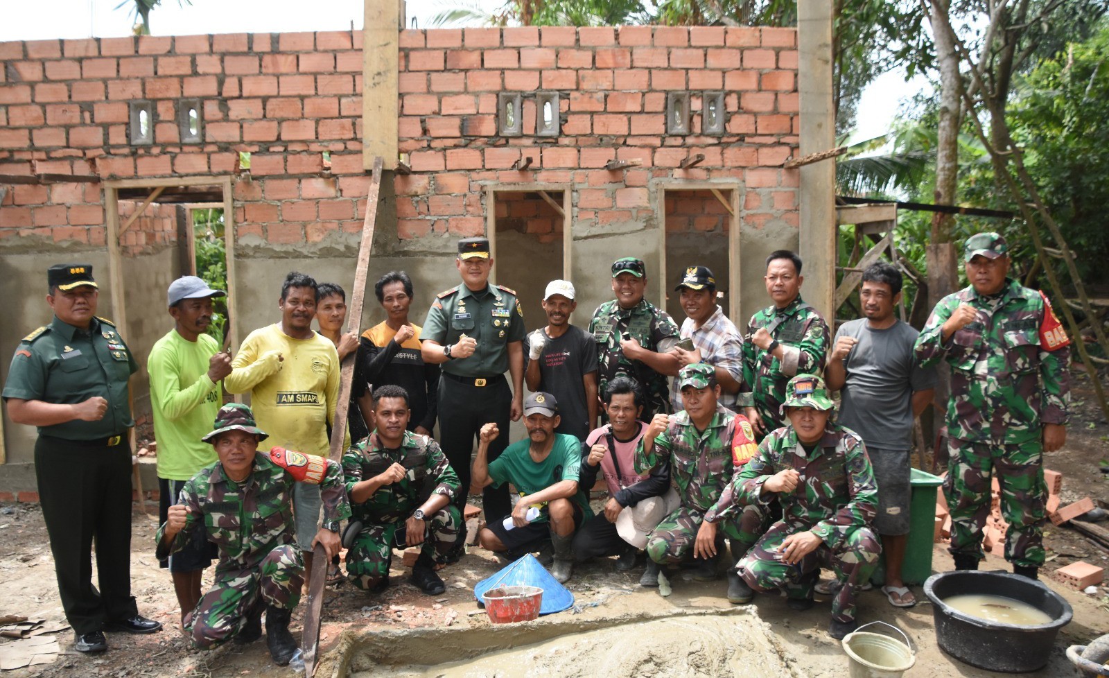 Saat meninjau pengerjaan Besemah (Sumur Bor) serta Rehab RTLH di Desa Tanjung Aur Kec. Jejawi Kab. OKI, Danrem berkomunikasi langsung dengan Kades dan para tukang yang mengerjakan pembangunan tersebut.